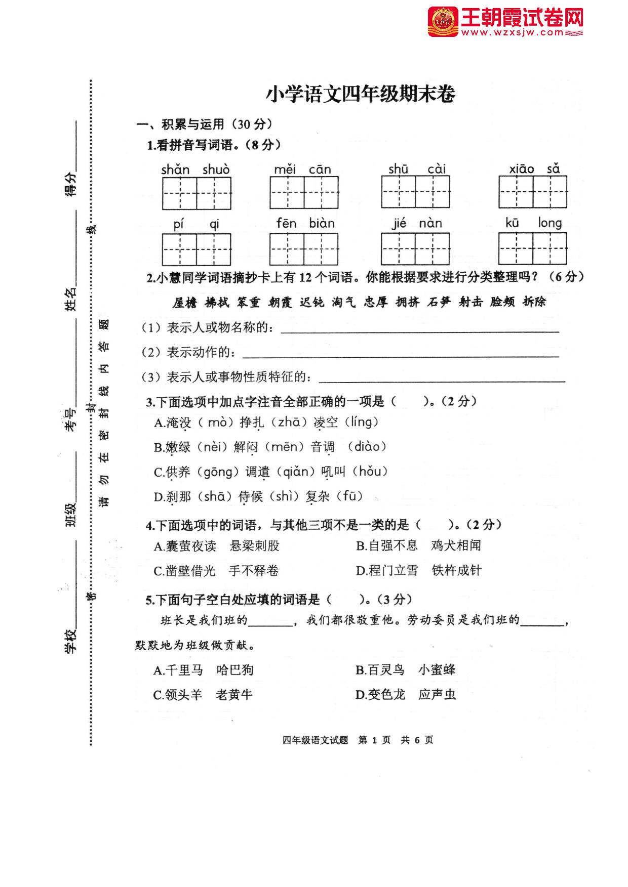 江苏省徐州市新沂市2022-2023学年下学期期末试卷四年级语文(人教版)