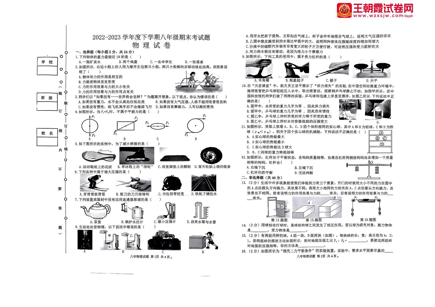 八年级物理人教版下册期末卷