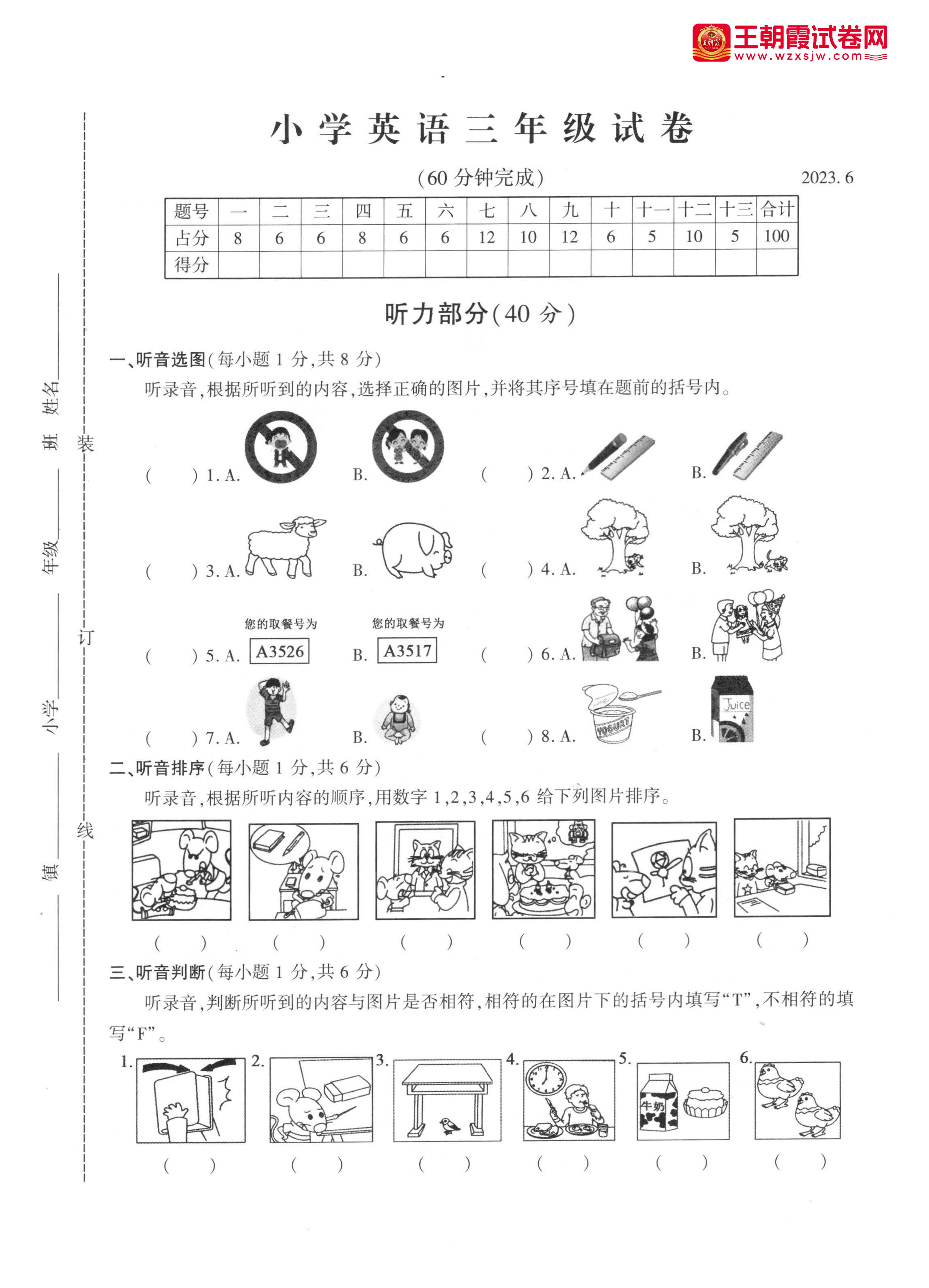 三年级英语译林版(译林牛津版)下册期末卷