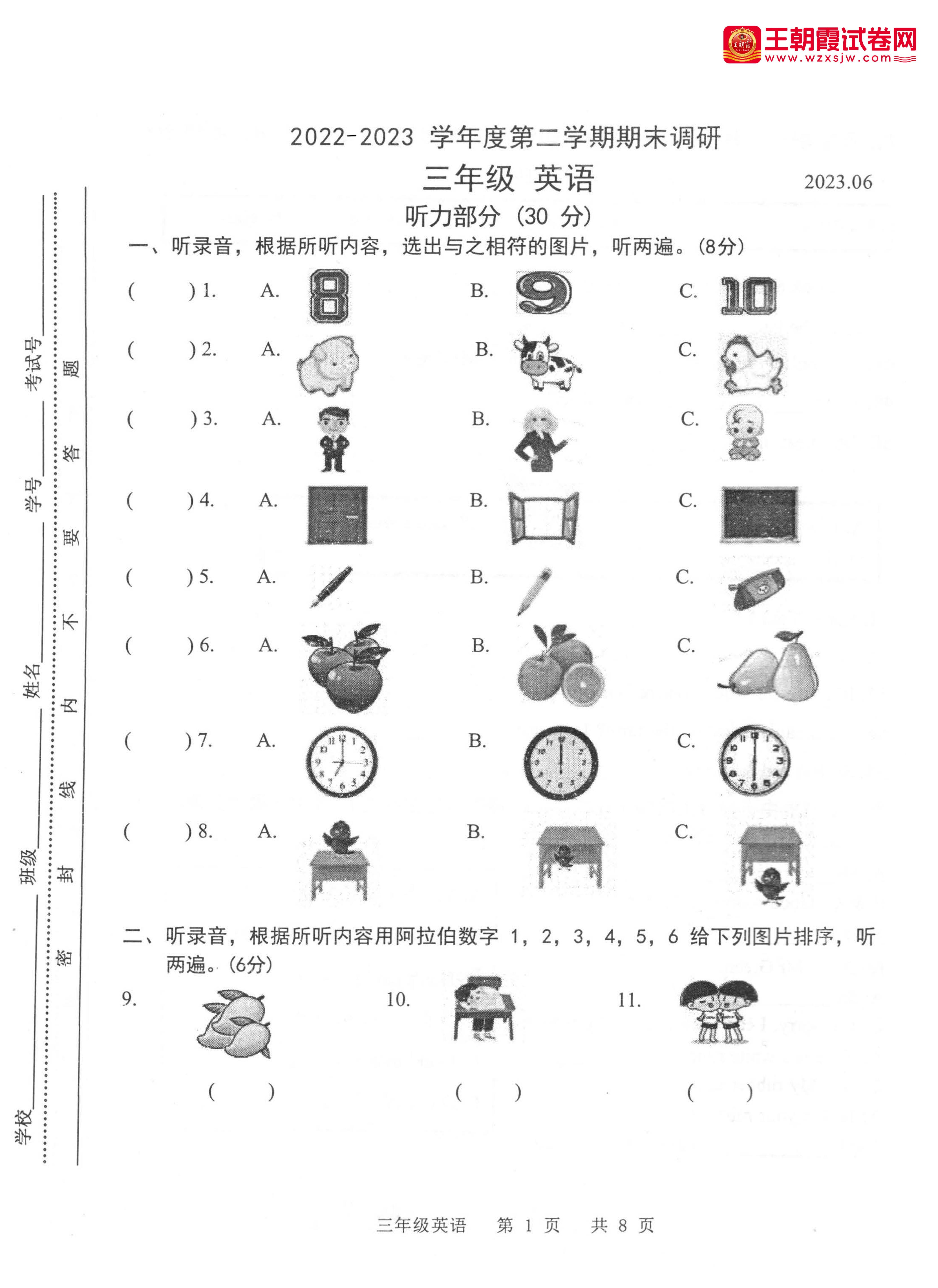 江苏省苏州市太仓市2022-2023学年第二学期期末调研三年级英语(译林版)【无听力音频】