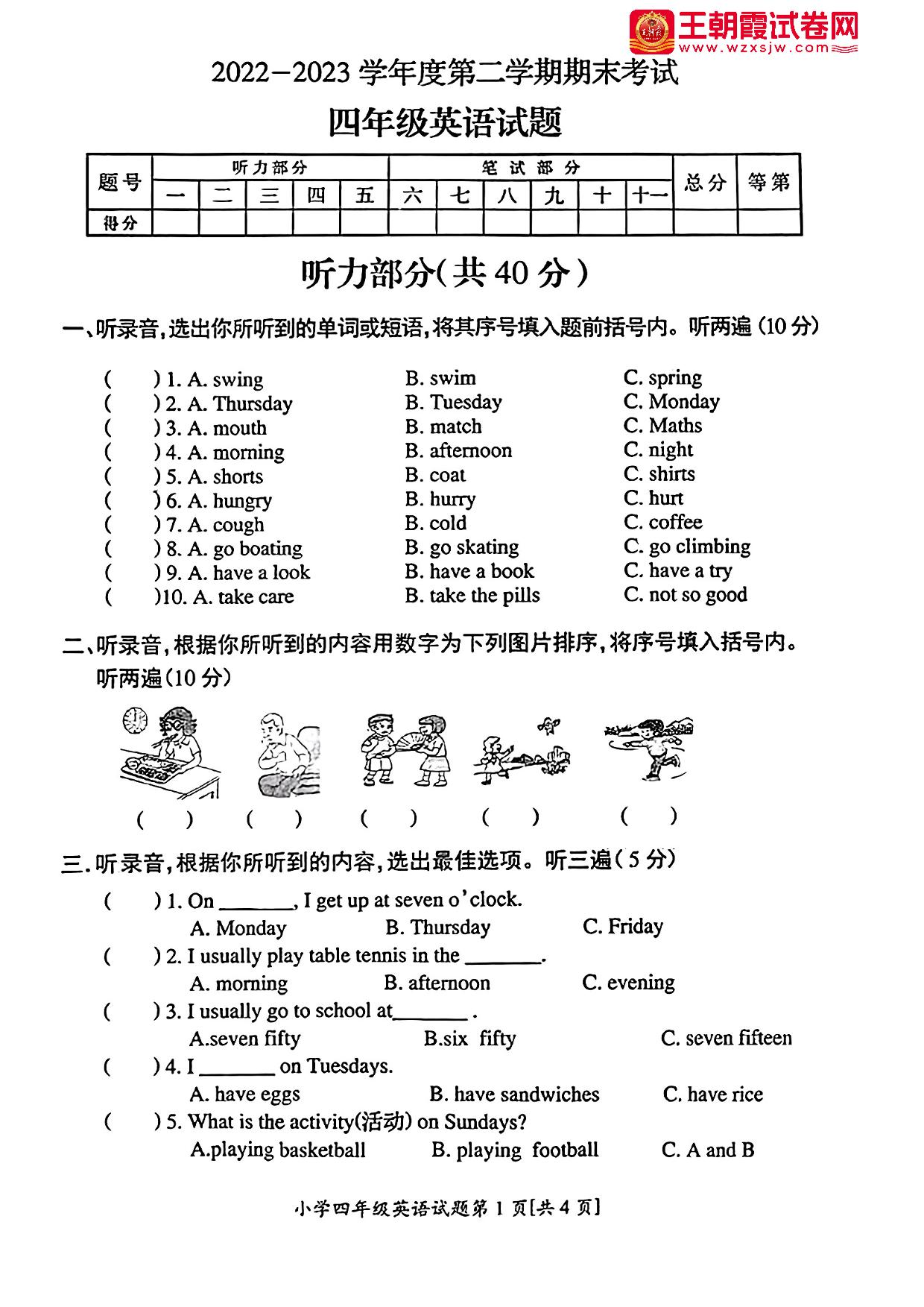 江苏省徐州市邳州市2022-2023学年第二学期期末考试试题四年级英语(译林版)【无听力音频】