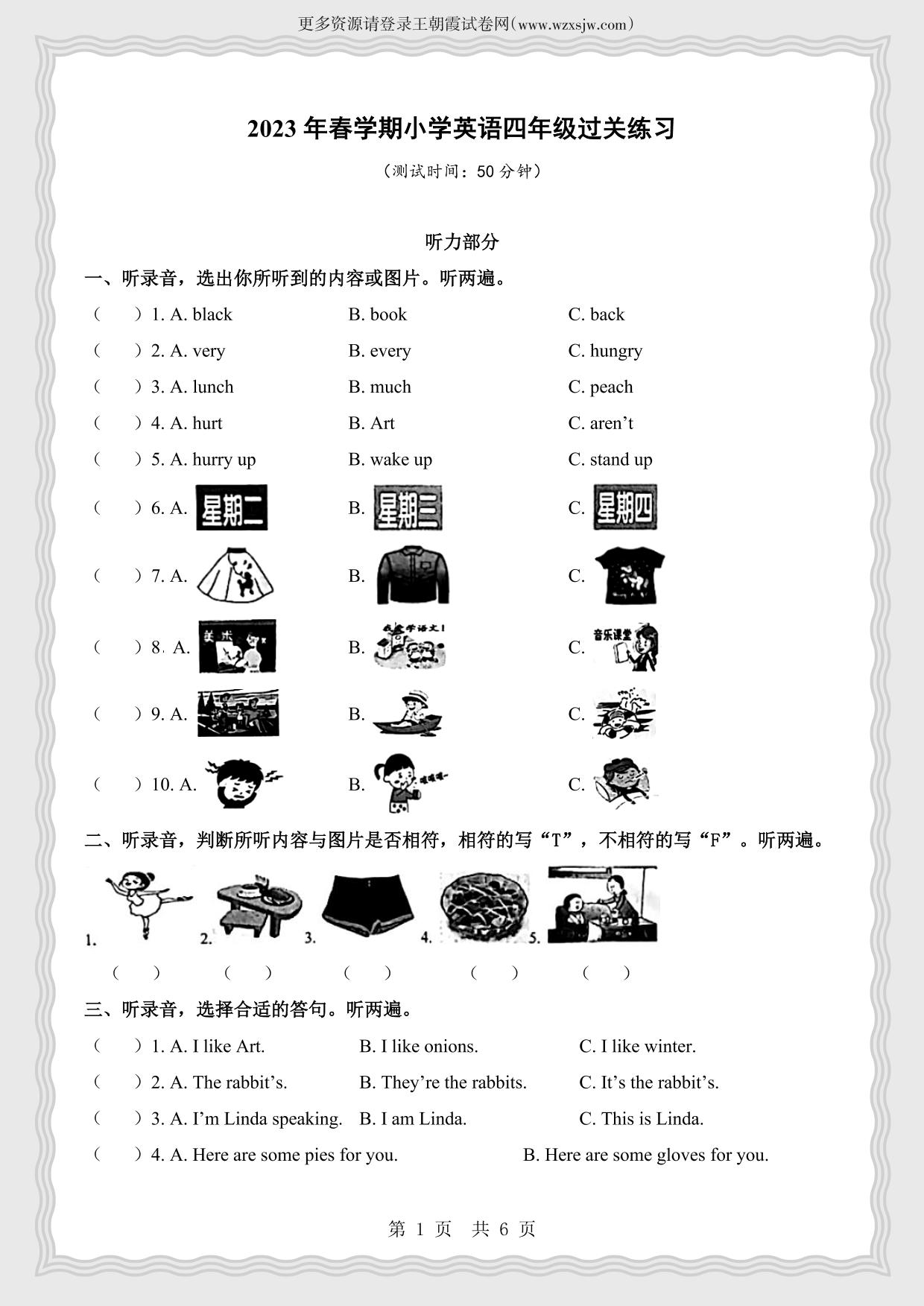 江苏省泰州市姜堰区2022-2023学年第二学期期末过关练习试卷四年级英语(译林版)【无听力音频】