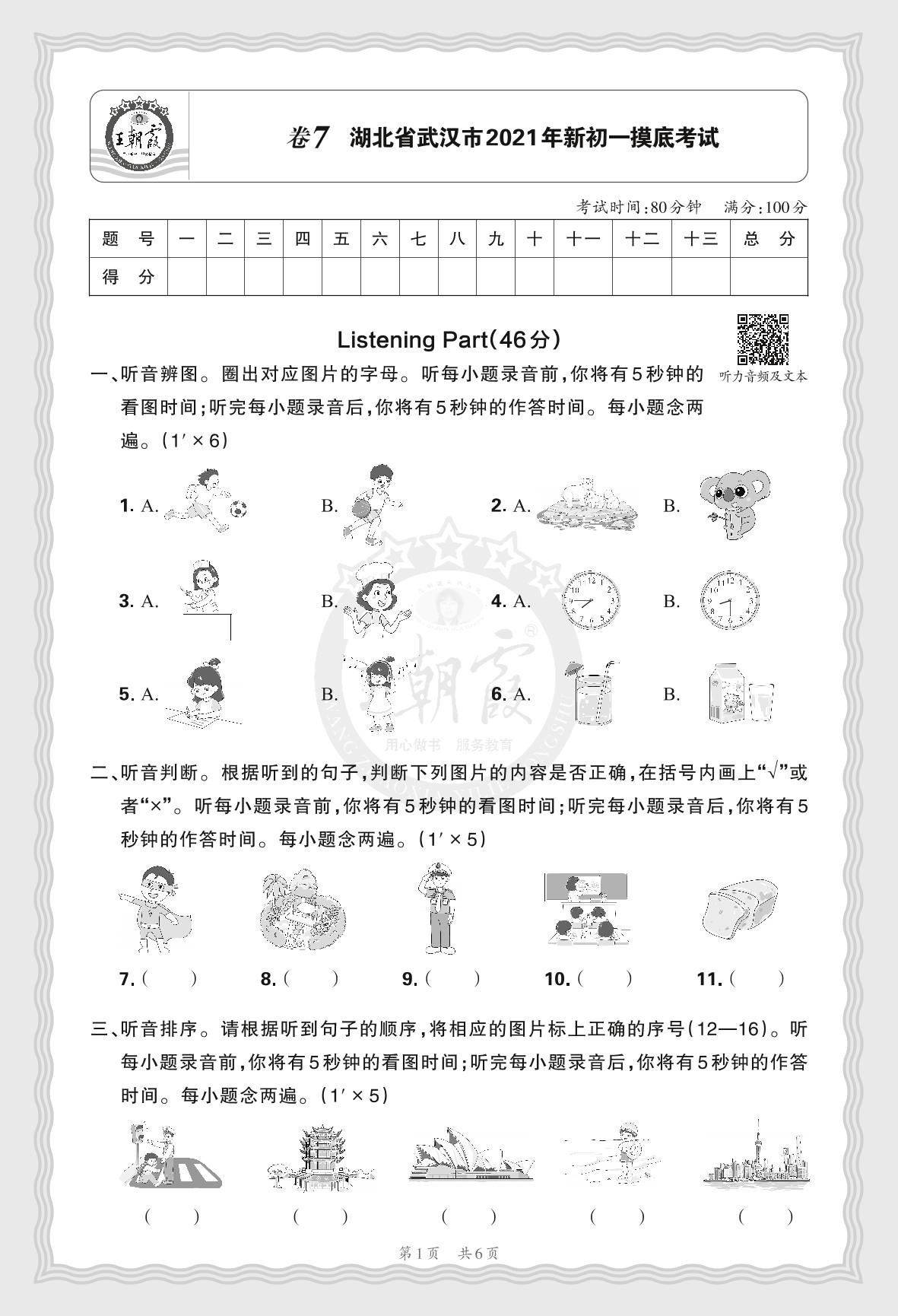 小升初英语·湖北省武汉市2021年新初一摸底考试【7】