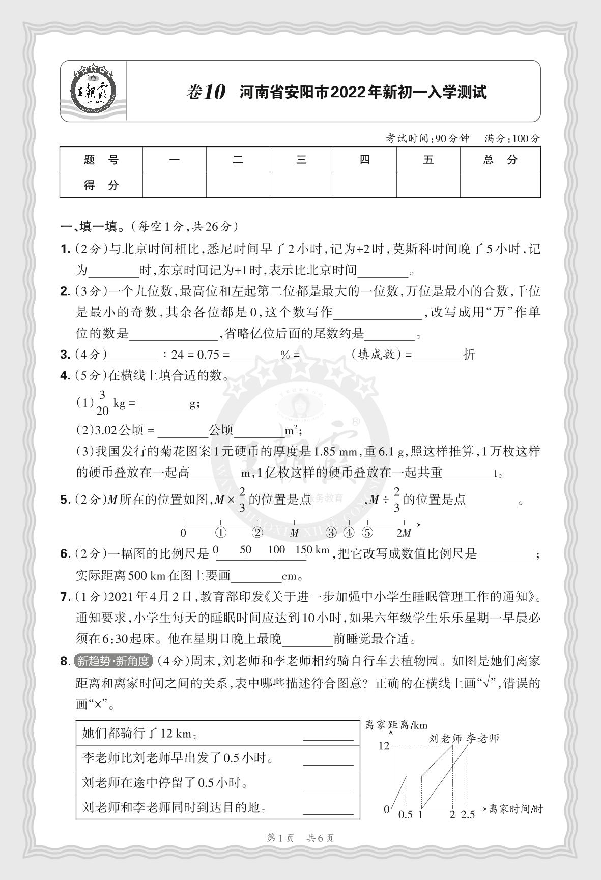 小升初数学·河南省安阳市2022年新初一入学测试【10】