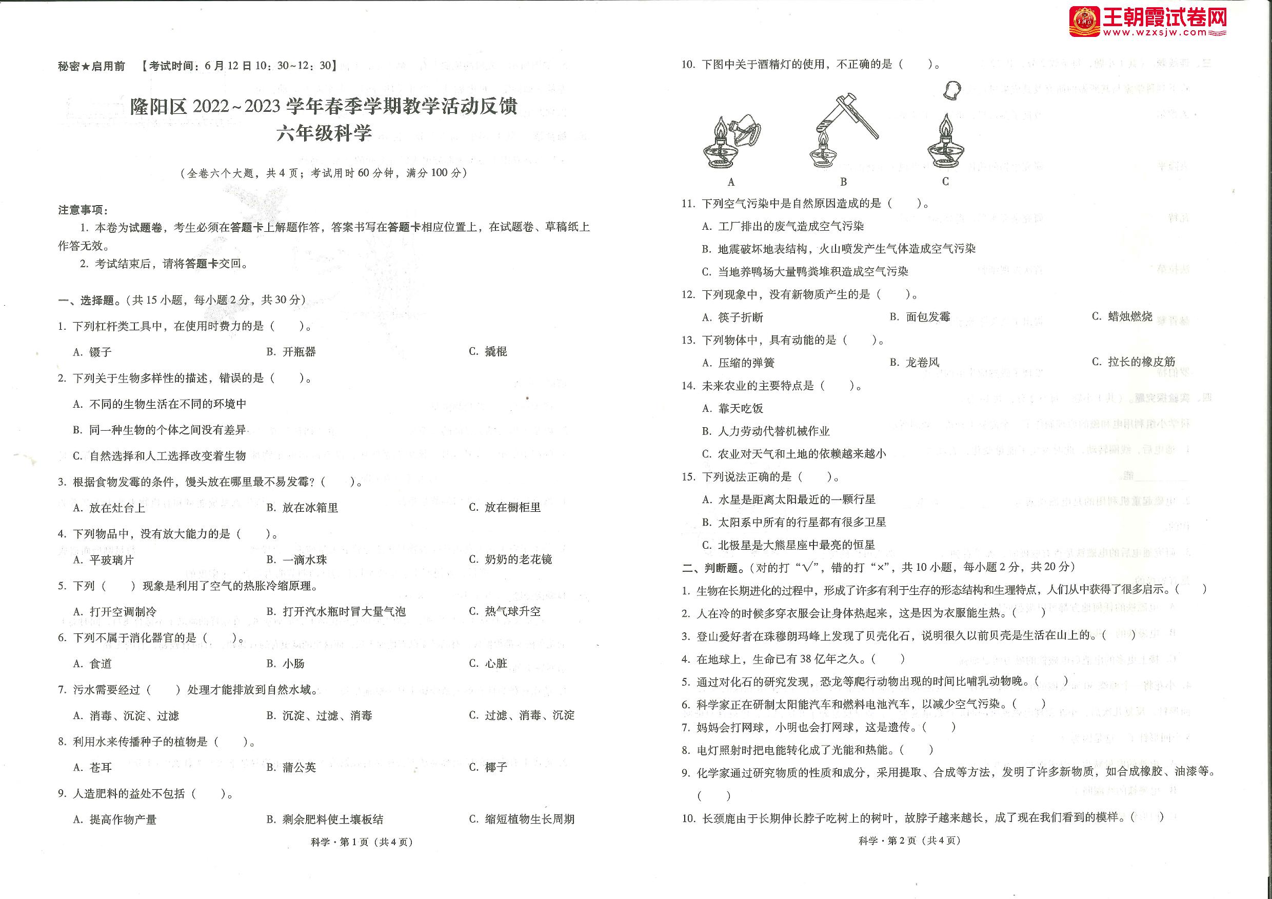 云南省保山市隆阳区2022-2023学年第二学期期末教学活动反馈六年级科学(苏教版)
