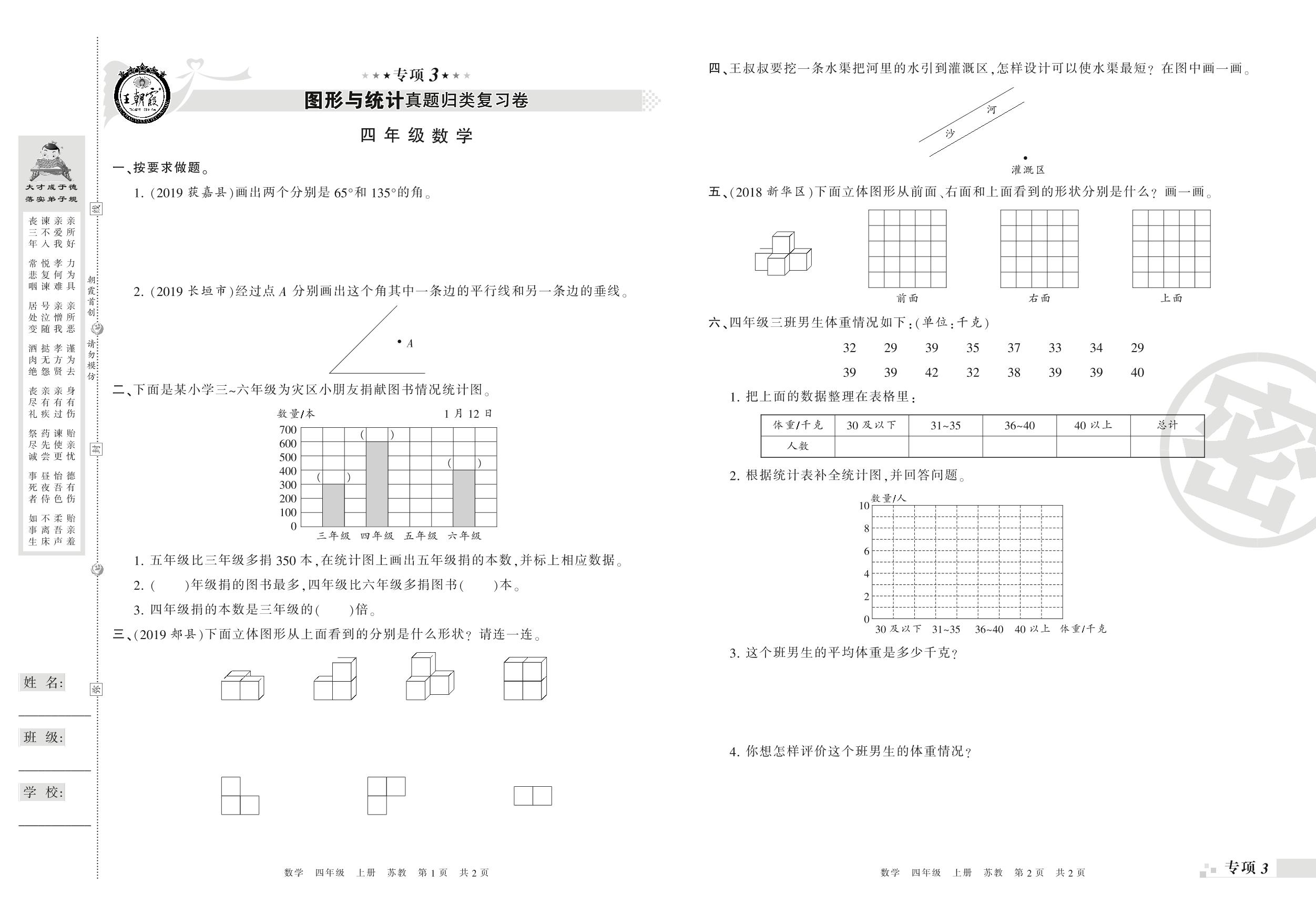 王朝霞期末专项卷——图形与统计、解决问题真题归类复习四年级上册数学(苏教版)_R210804150008【0】