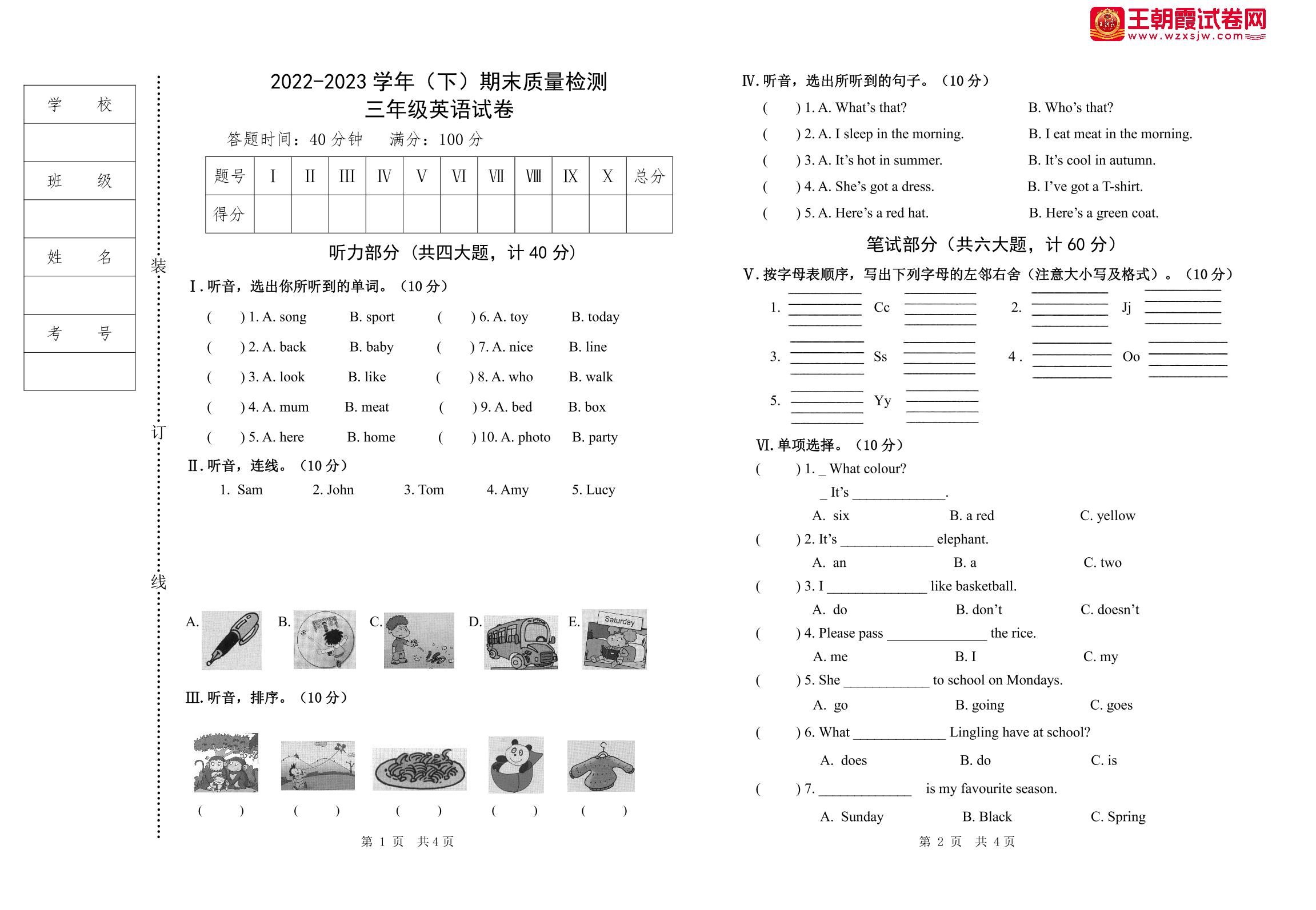 辽宁省本溪市本溪县2022-2023学年下学期期末质量检测三年级英语(外研版)