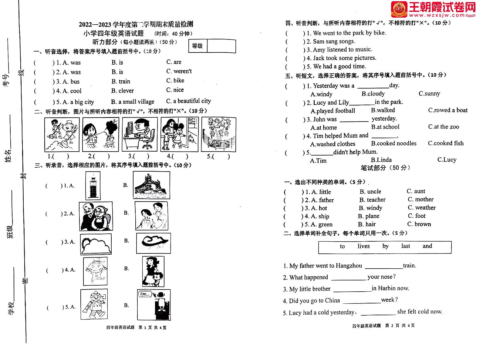 山东省潍坊市坊子区2022-2023学年度第二学期期末质量检测四年级英语(外研版)