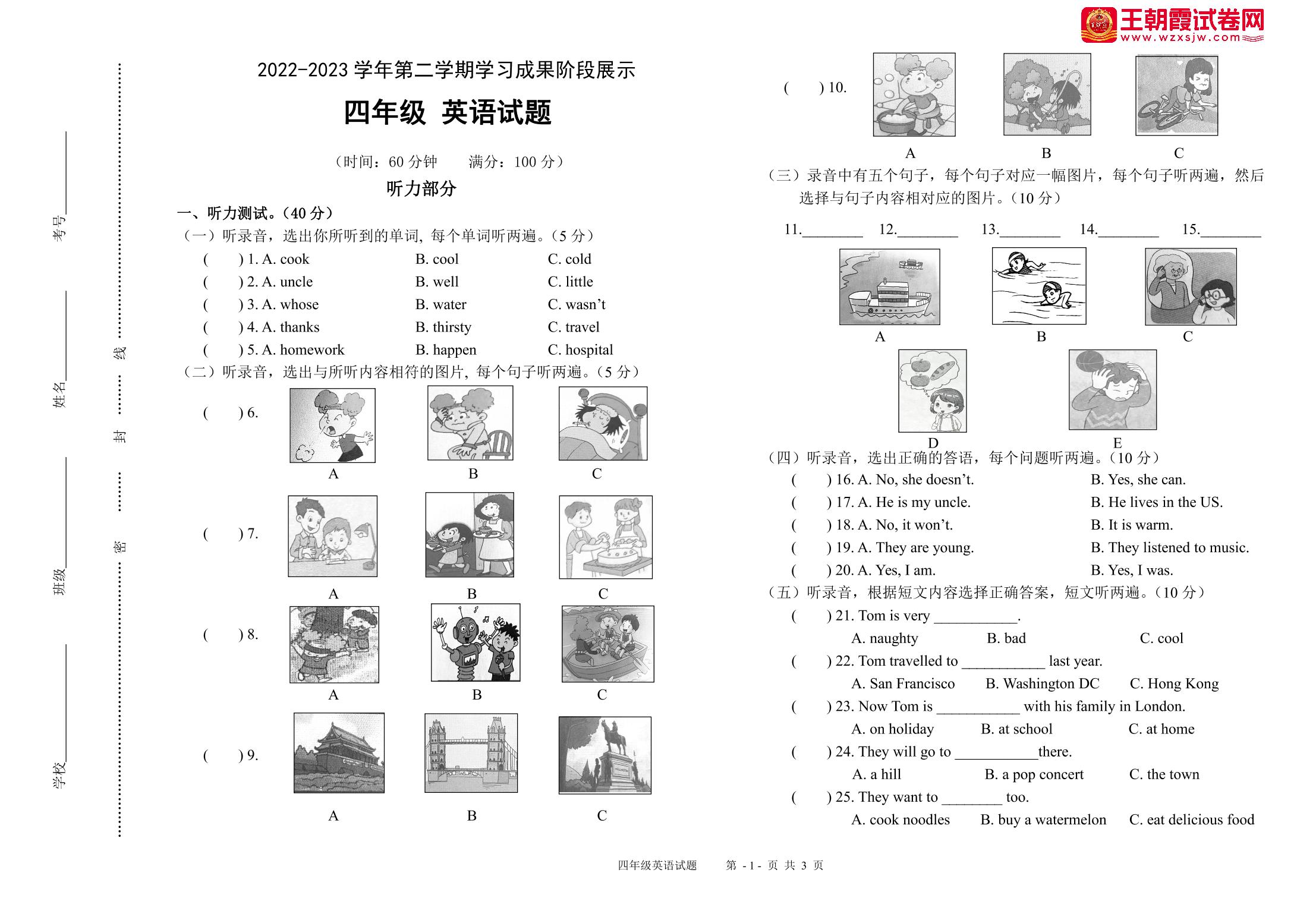 山东省德州市夏津县2022-2023学年第二学期期末学习成功阶段展示四年级英语(外研版)【无听力音频】