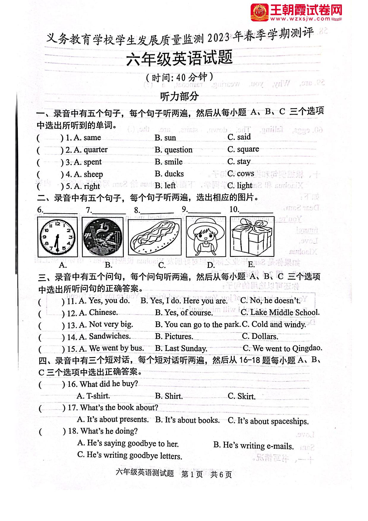 山东省日照地区2022-2023学年下学期期末学生发展质量监测试题六年级英语(外研版)【无听力音频】