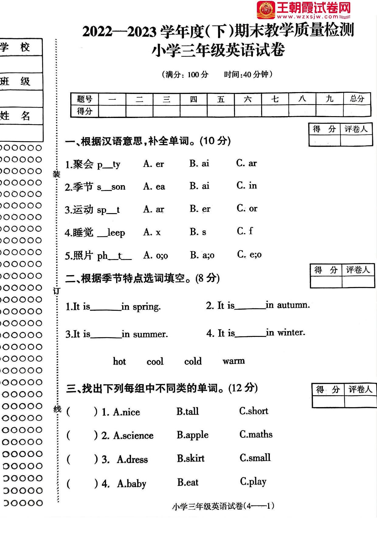 辽宁省朝阳市双塔区光明小学2022-2023学年度下学期期末教学质量检测三年级英语(外研版)