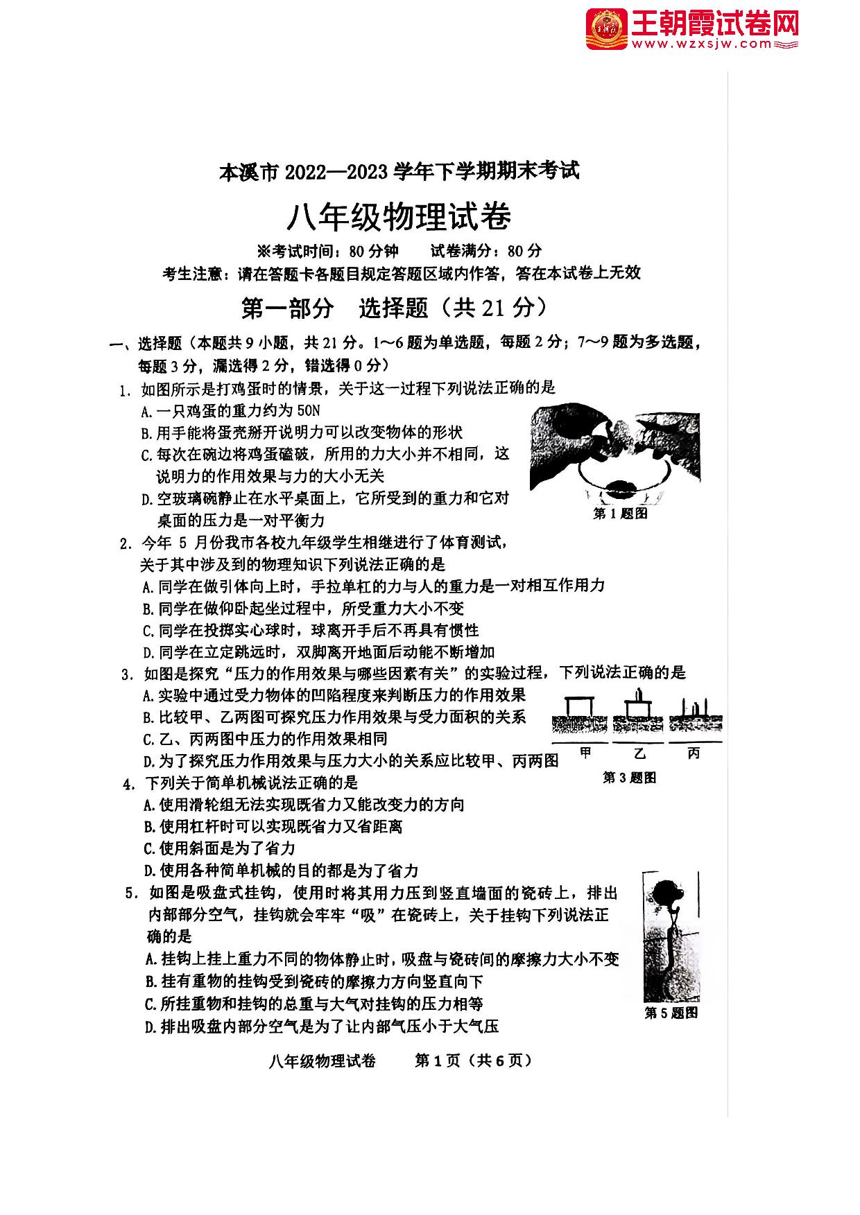 辽宁省本溪市2022-2023学年下学期期末考试八年级物理(人教版)