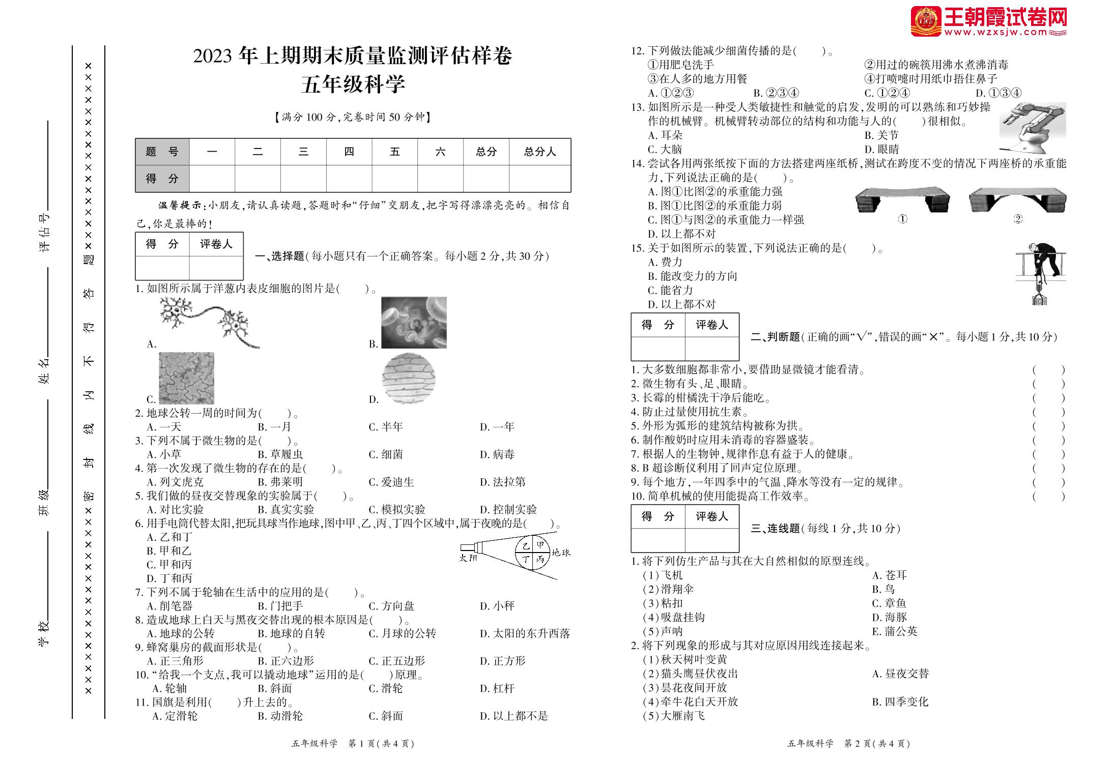四川省广安市岳池县2022-2023学年第二学期期末质量监测评估试卷五年级科学(苏教版)