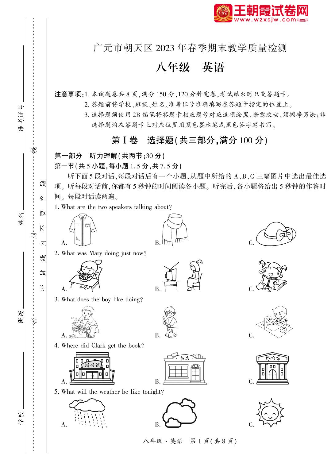 四川省广元市朝天区2022-2023学年度第二学期期末教学质量检测试卷八年级英语(人教版)