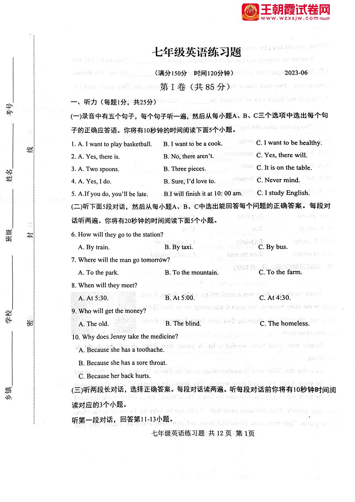山东省泰安市岱岳区2022-2023学年下学期6月期末考试试题七年级英语(外研版)