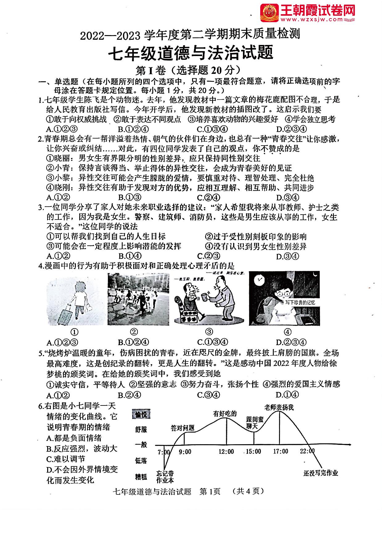 山东省菏泽市东明县2022-2023学年度第二学期期末质量检测七年级道德与法治(人教版)