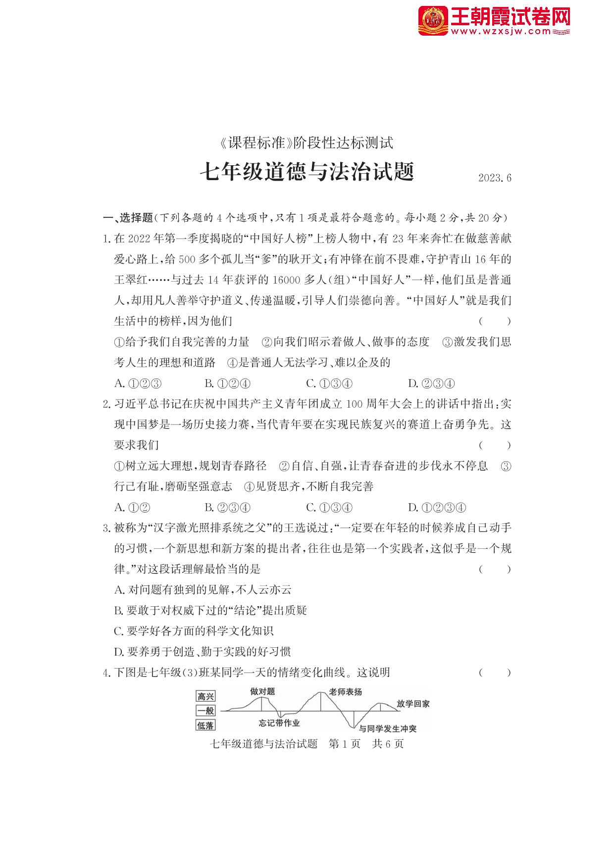 山东省济宁市泗水县2022-2023学年下学期期末阶段性达标测试七年级道德与法治(人教版)