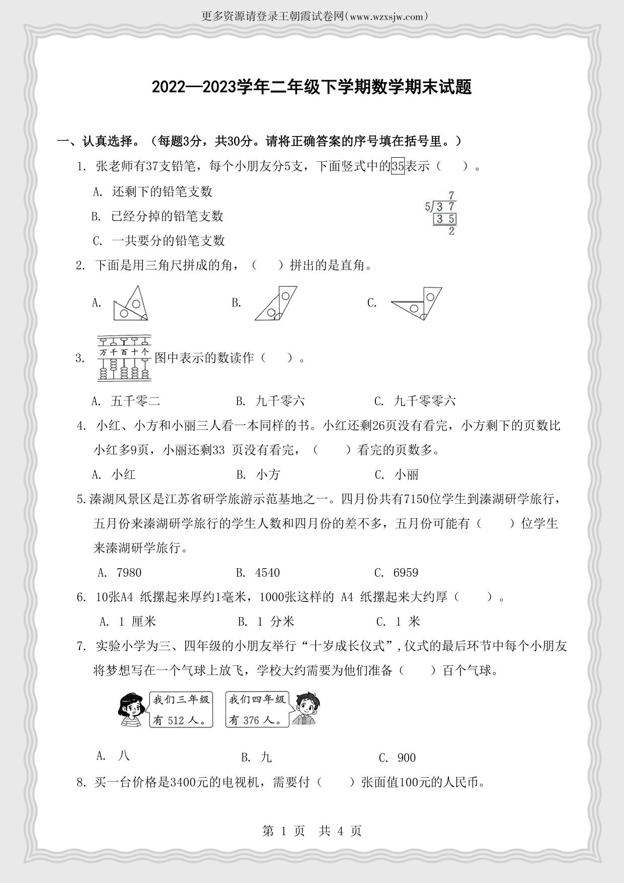 江苏省泰州市姜堰区2022-2023学年第二学期期末试题二年级数学(苏教版)