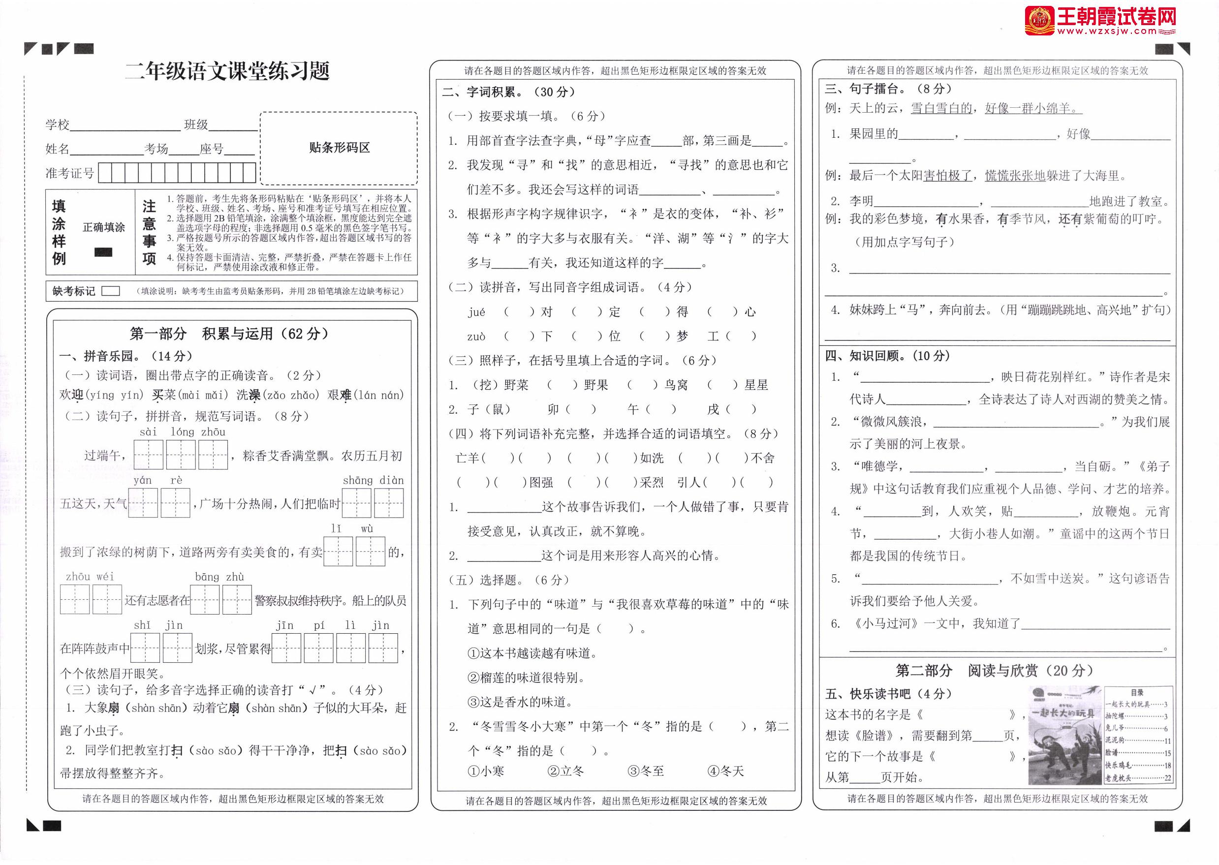 贵州省铜仁市松桃苗族自治县2022-2023学年度第二学期期末课堂练习题二年级语文(人教版)