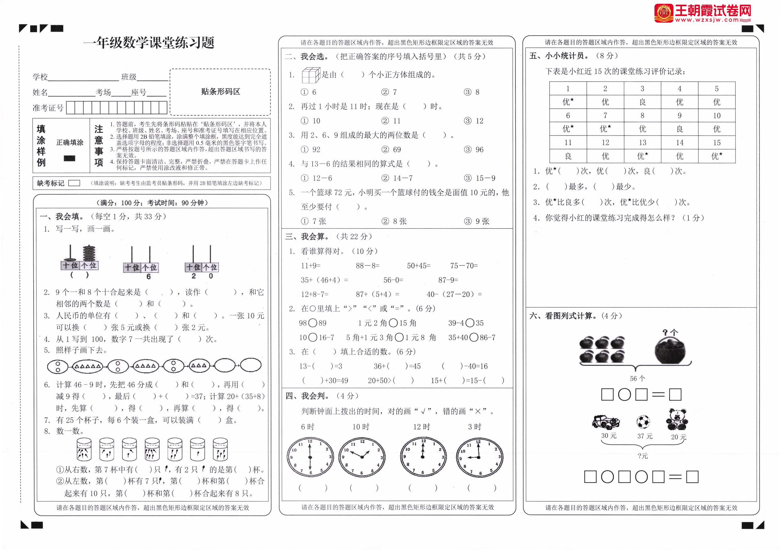 贵州省铜仁市松桃苗族自治县2022-2023学年度第二学期期末课堂练习题一年级数学(人教版)