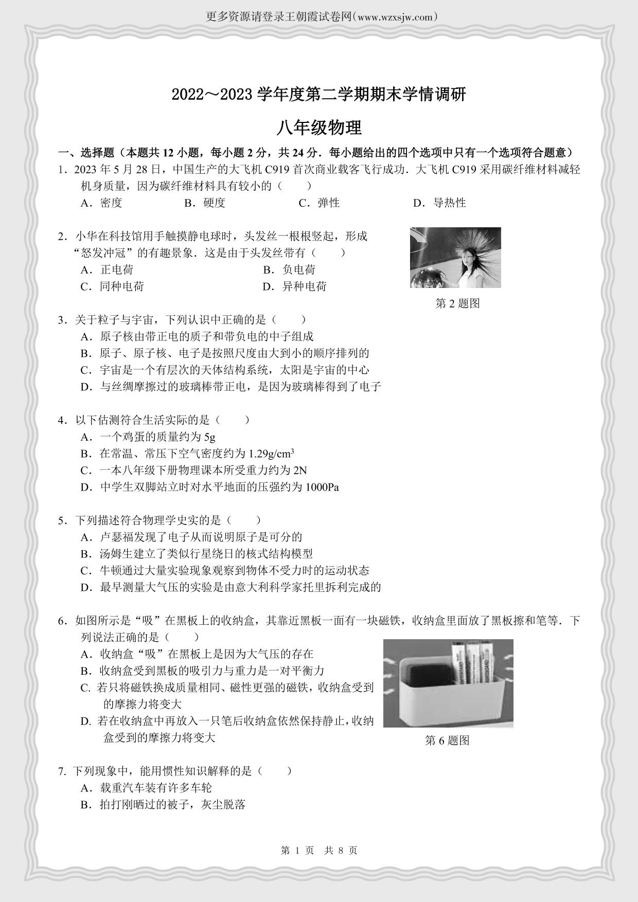 江苏省南京市溧水区2022_2023学年度第二学期期末学情调研八年级物理(苏科版)
