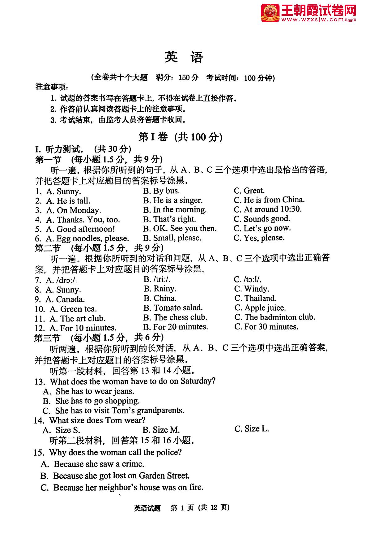 重庆市巴蜀中学2022-2023学年下学期期末考试七年级英语(人教版)【无听力音频】