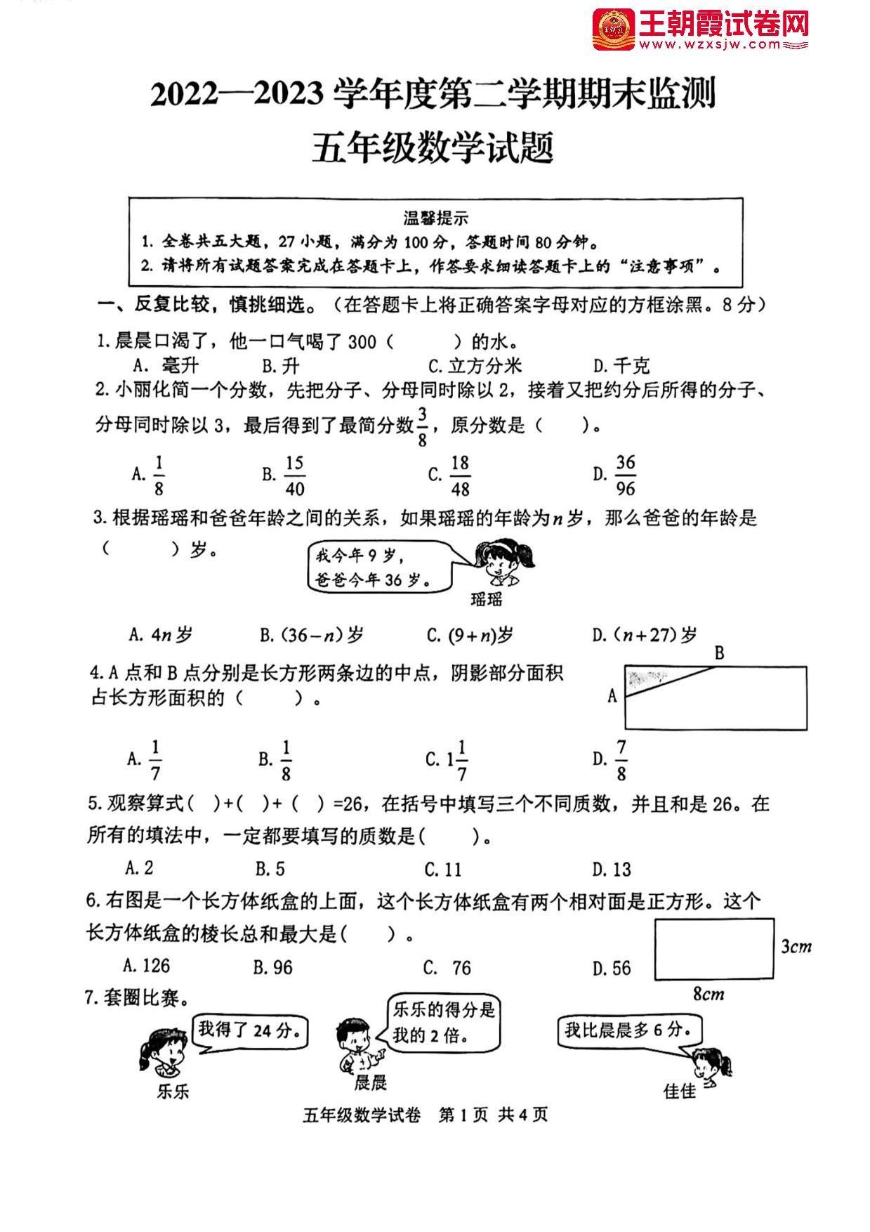 重庆市潼南区2022-2023学年度第二学期期末监测五年级数学(人教版)