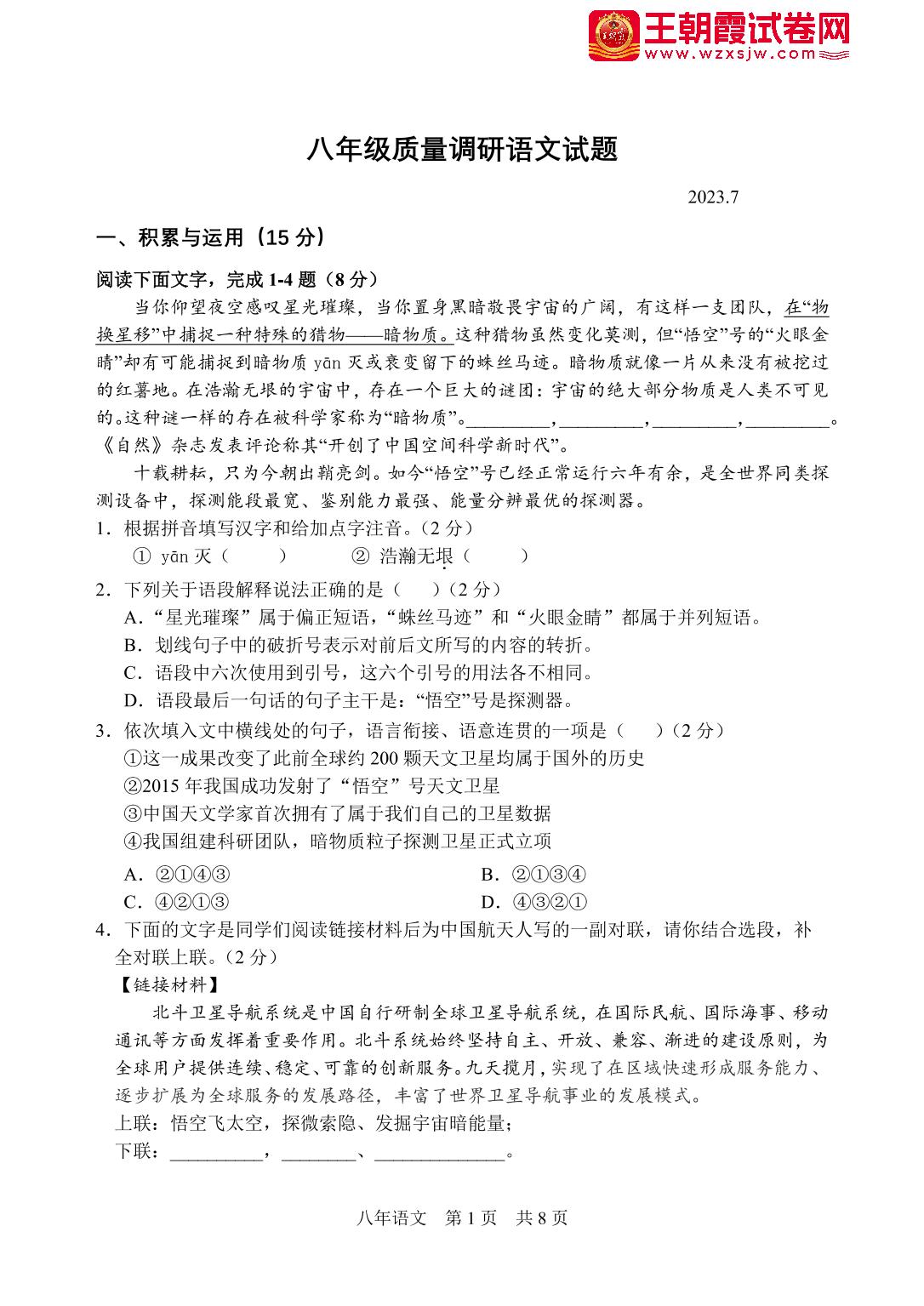 吉林省长春市赫行实验学校2022-2023学年下学期期末质量调研八年级语文(人教版)