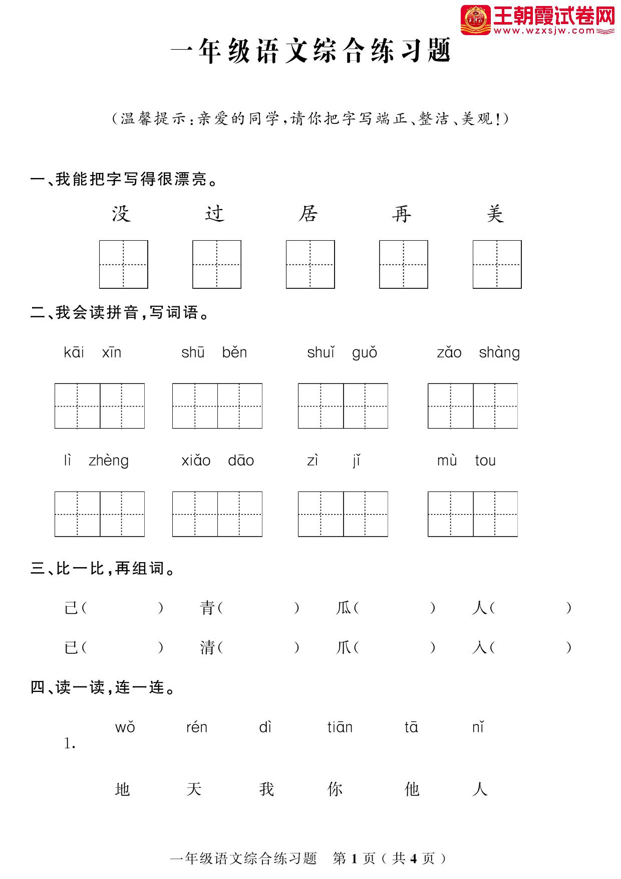 一年级语文人教版下册期末卷