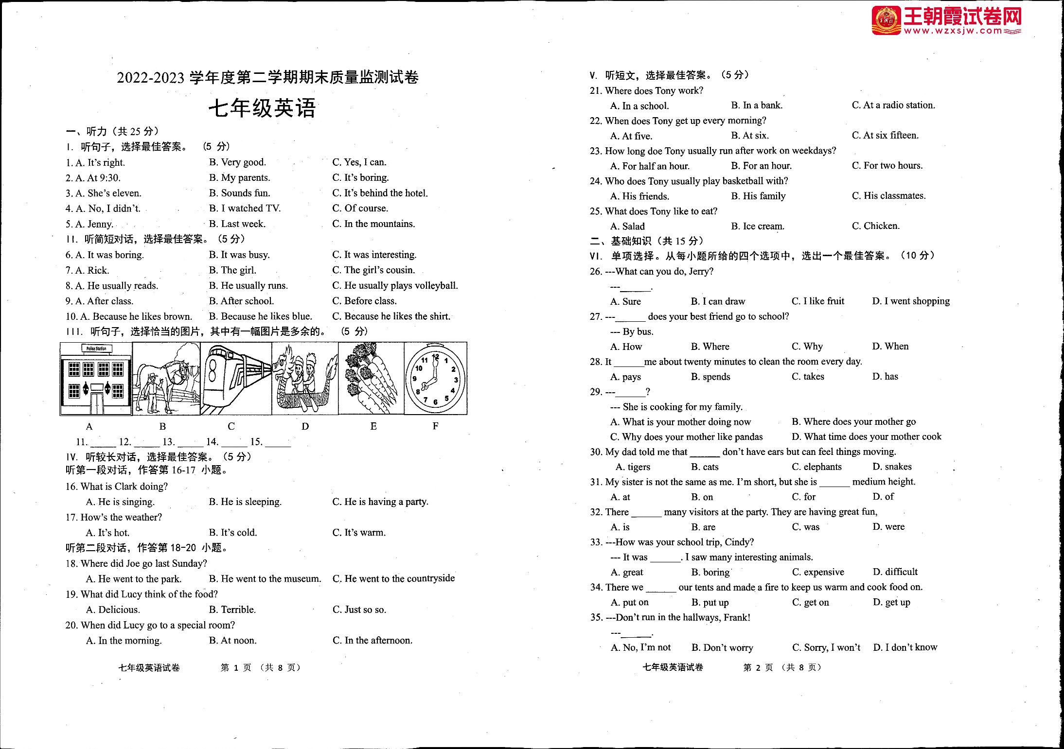 七年级英语人教版下册期末卷