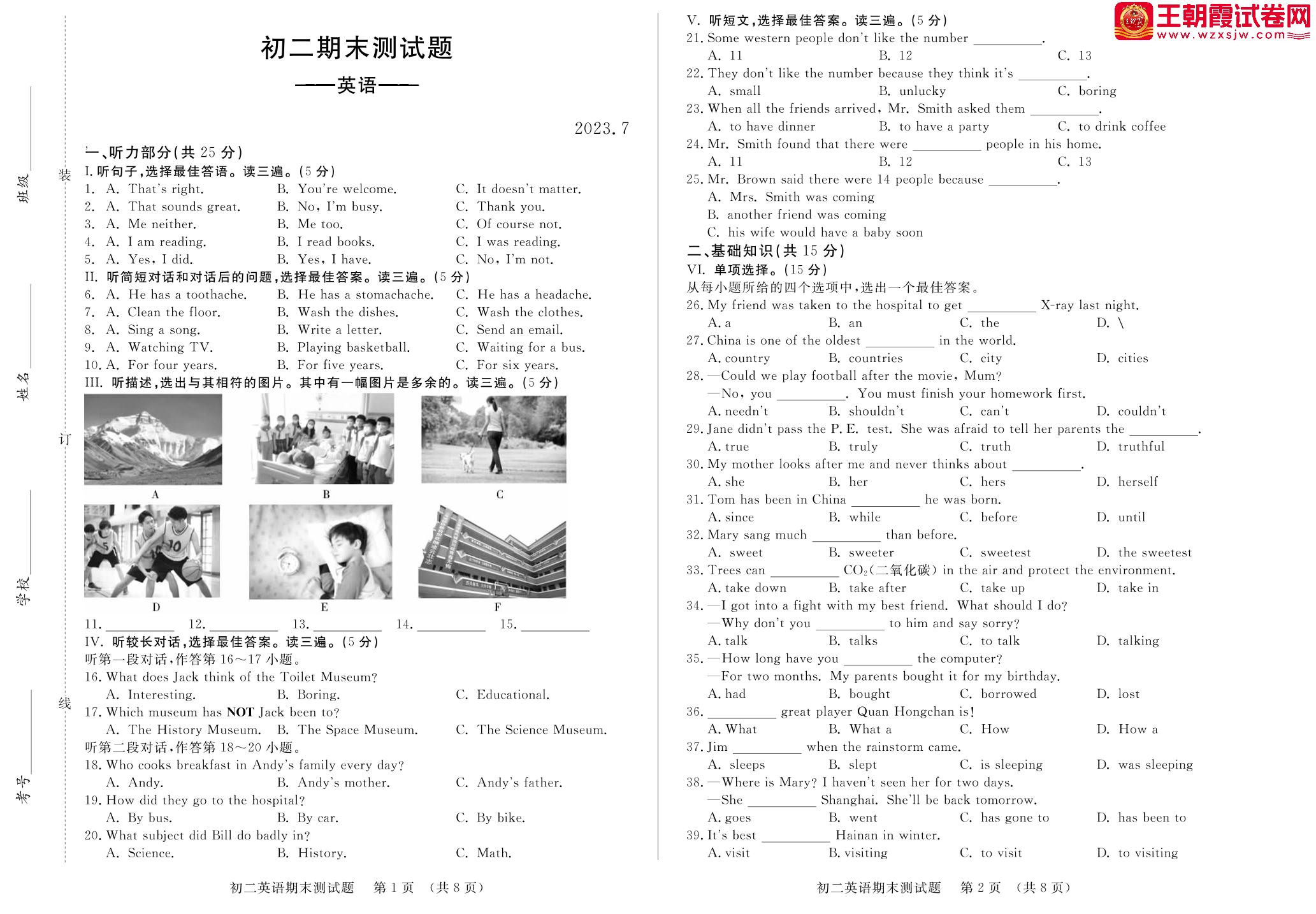 吉林省长春市宽城区2022-2023学年下学期期末测试卷八年级英语(人教版)