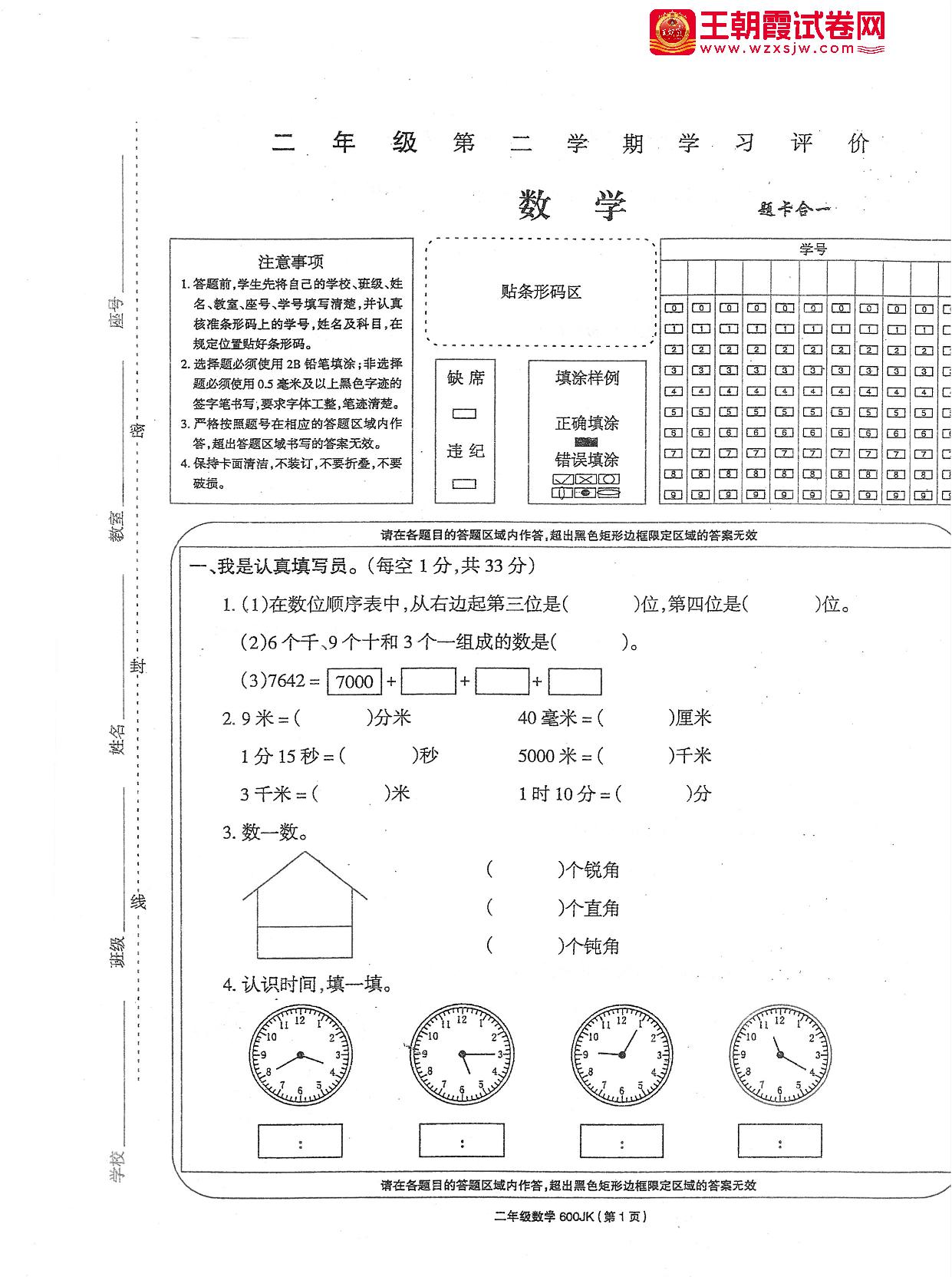 安徽省亳州市2022-2023学年第二学期期末学习评价二年级数学(北师版)