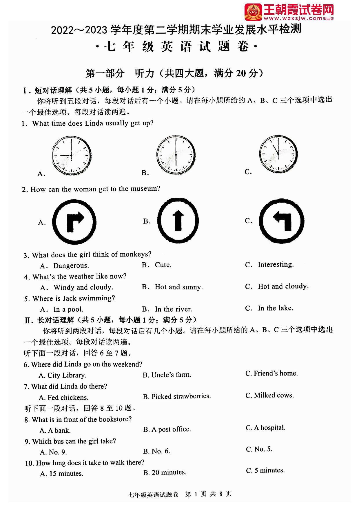 安徽省芜湖无为市2022-2023学年度第二学期期末学业发展水平检测七年级英语(人教版)