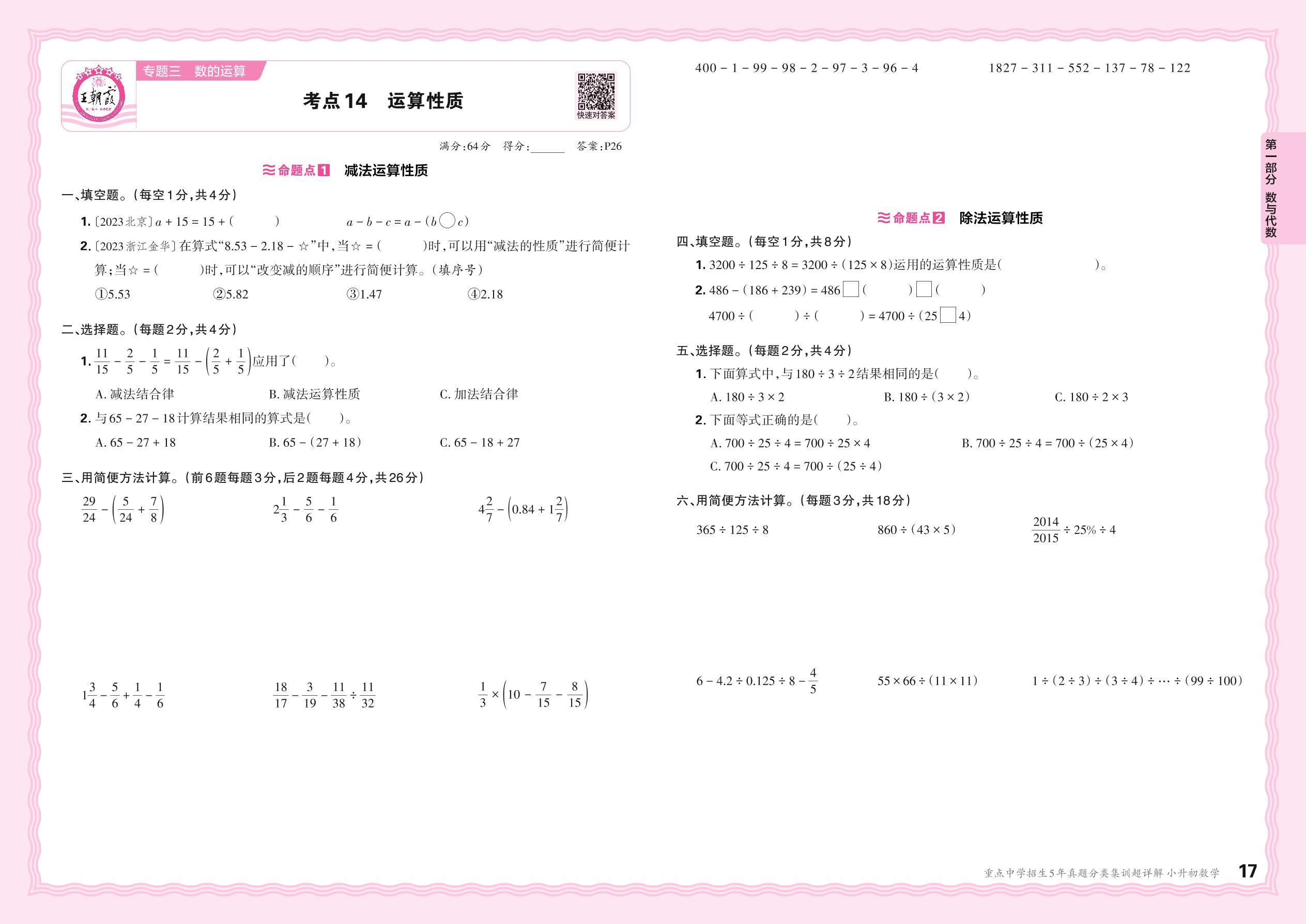 小升初数学·【5年真题分类集训】专题三 数的运算:考点14 运算性质