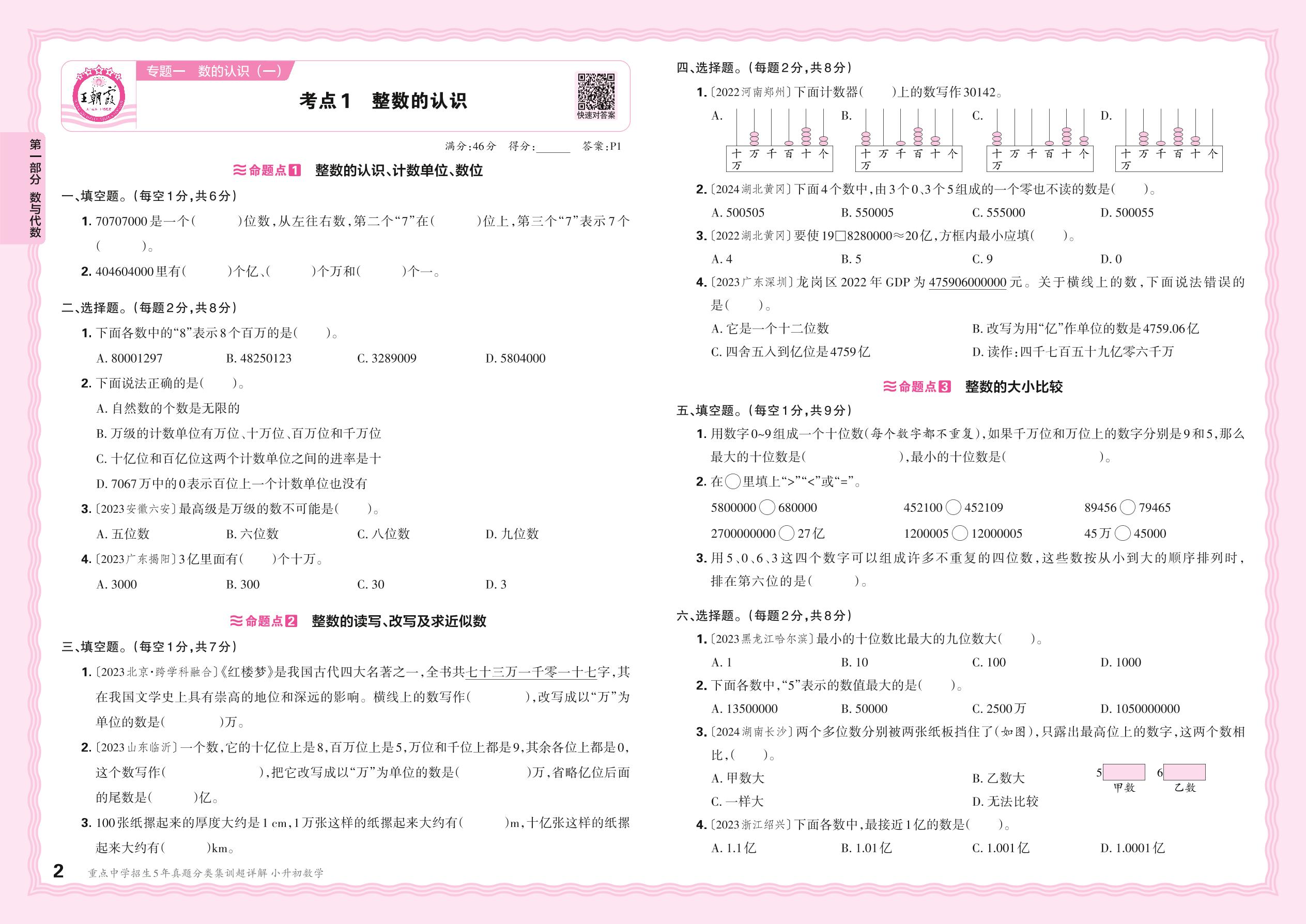 小升初数学·【5年真题分类集训】专题一 数的认识(一):考点1 整数的认识