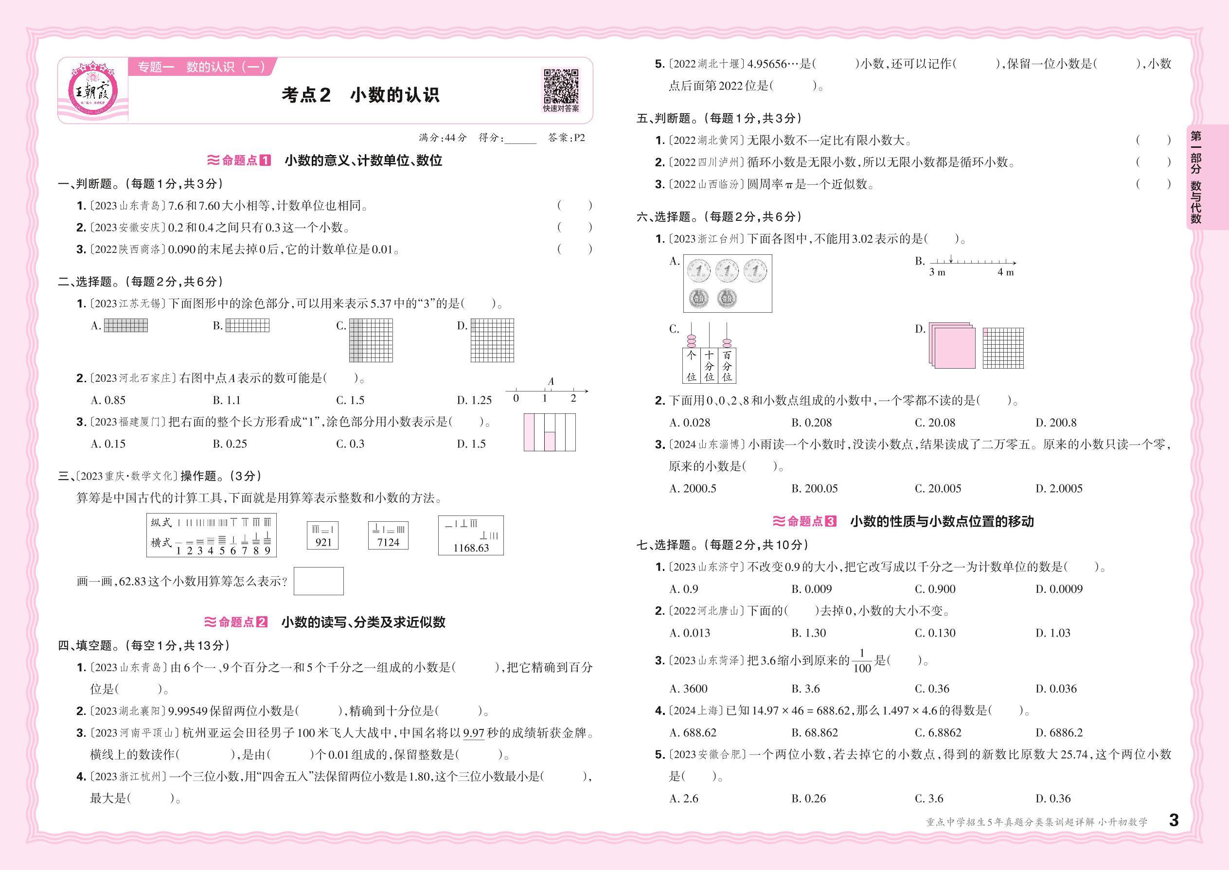 小升初数学·【5年真题分类集训】专题一 数的认识(一):考点2 小数的认识