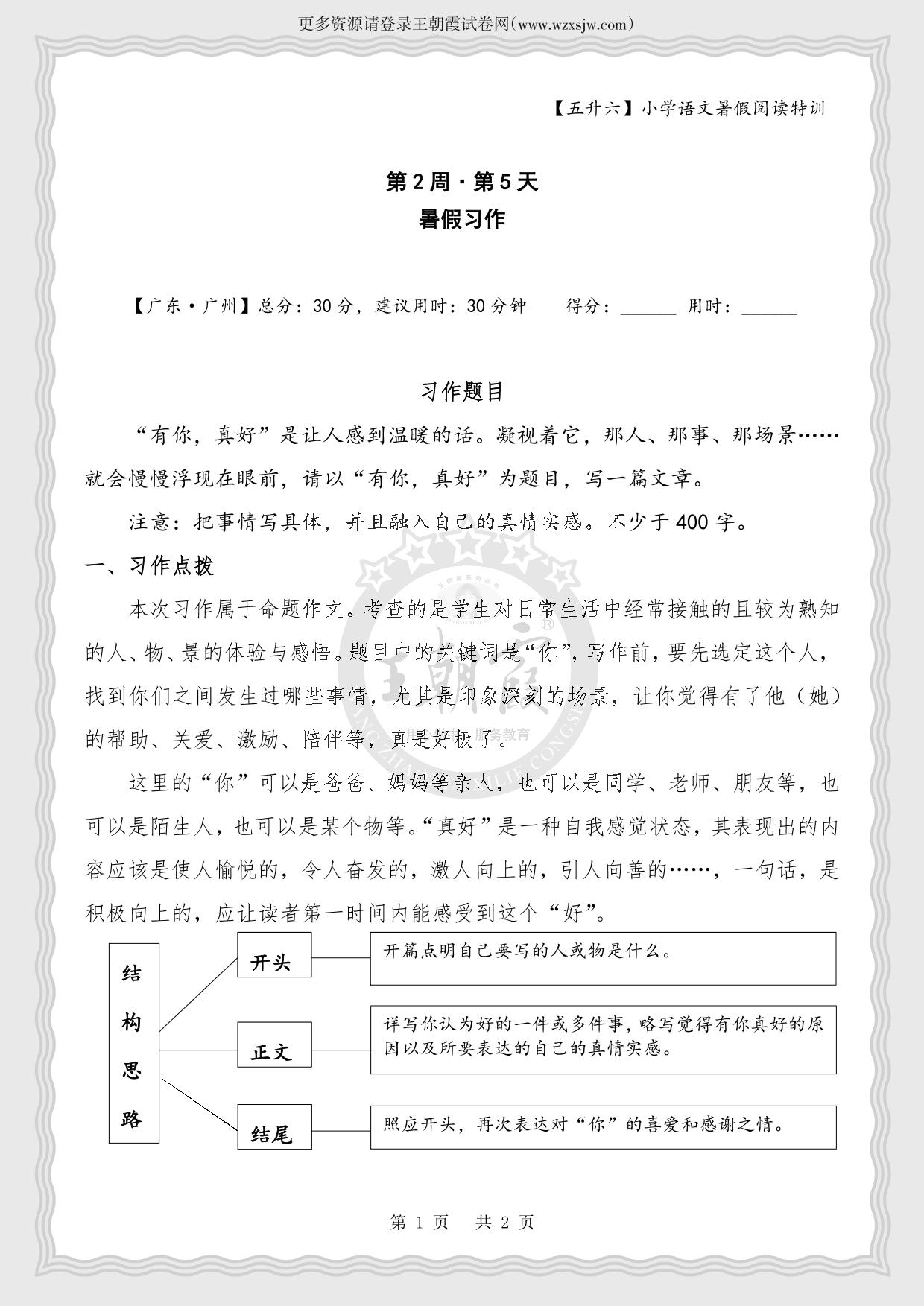 【五升六】小学语文暑假阅读特训第2周第5天 暑假习作