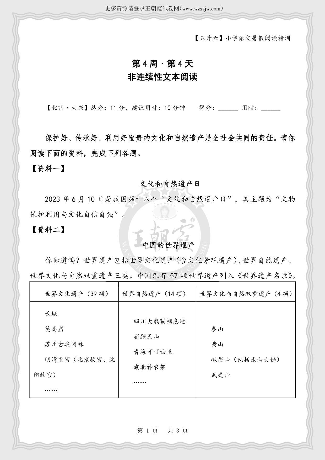 【五升六】小学语文暑假阅读特训第4周第4天 非连续性文本阅读