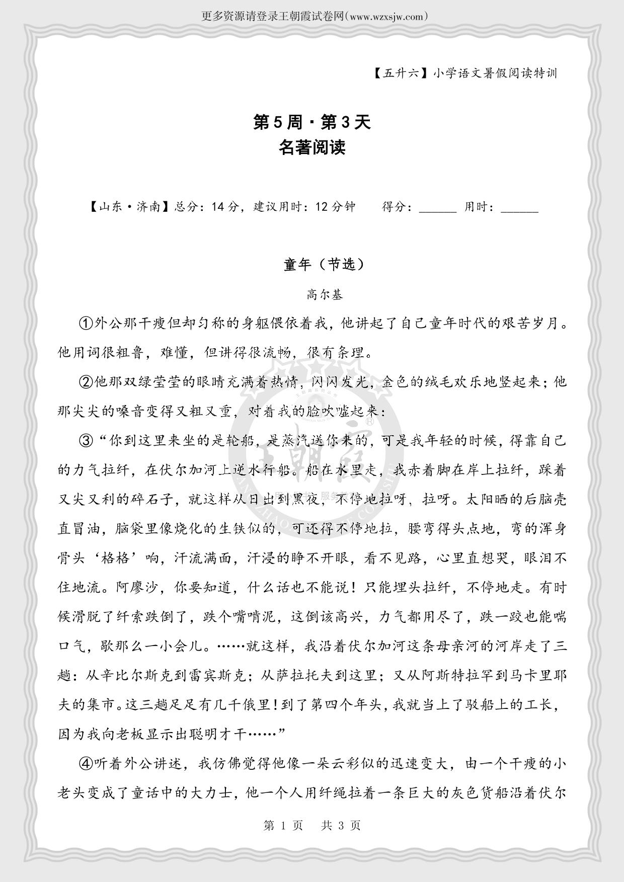 【五升六】小学语文暑假阅读特训第5周第3天 名著阅读