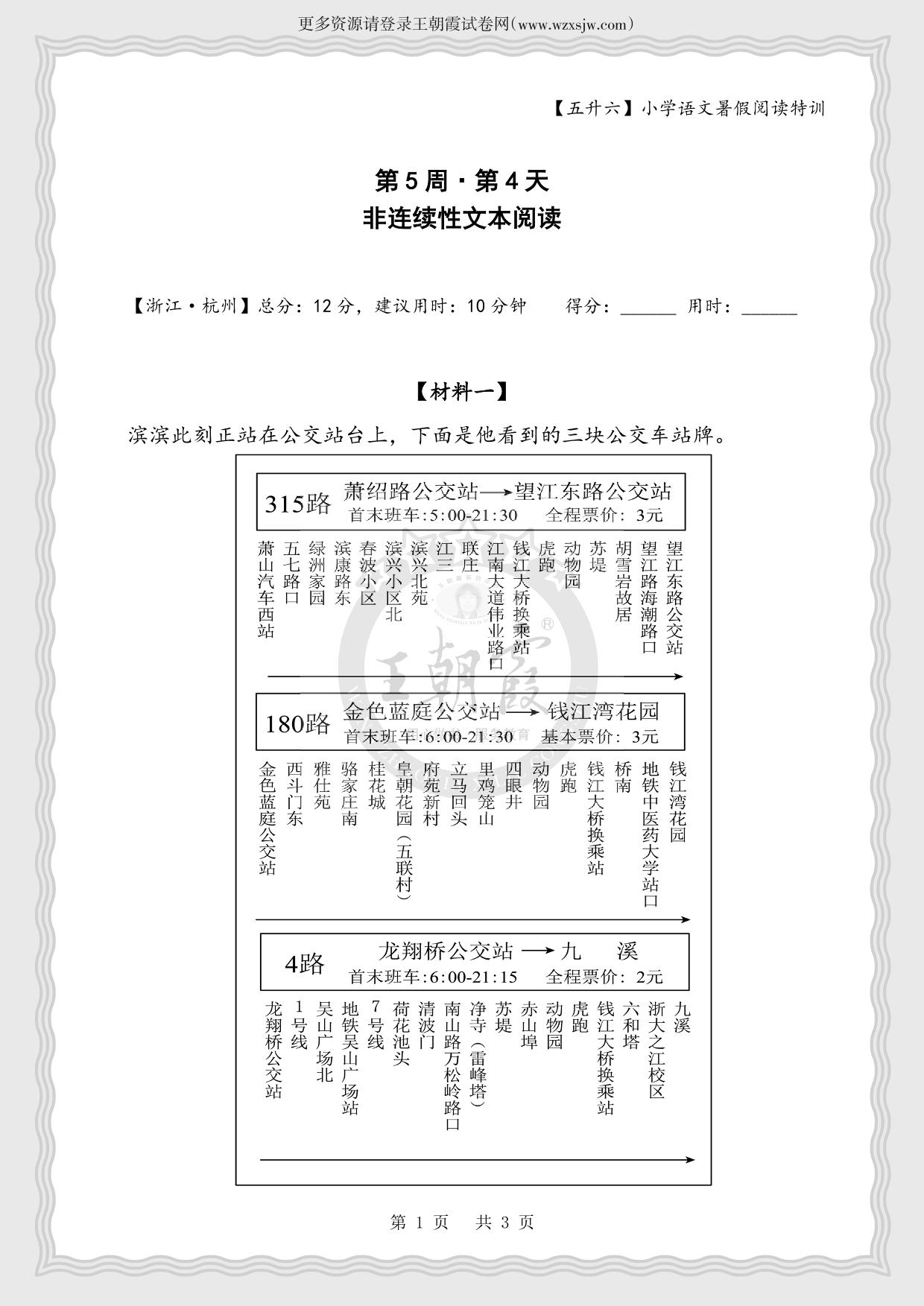 【五升六】小学语文暑假阅读特训第5周第4天 非连续性文本阅读