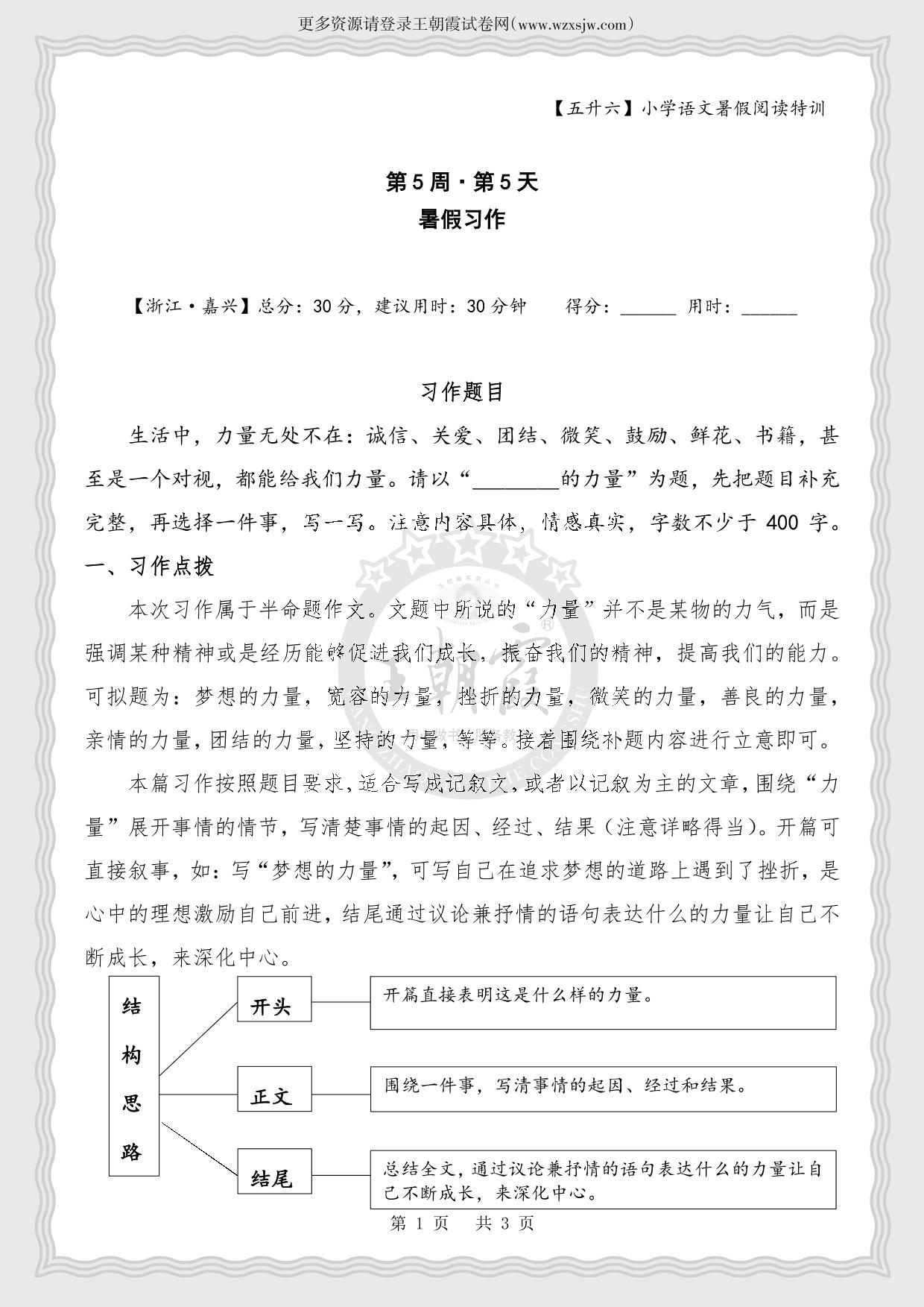 【五升六】小学语文暑假阅读特训第5周第5天 暑假习作
