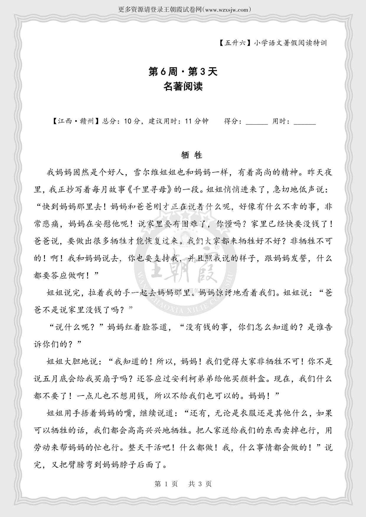 【五升六】小学语文暑假阅读特训第6周第3天 名著阅读