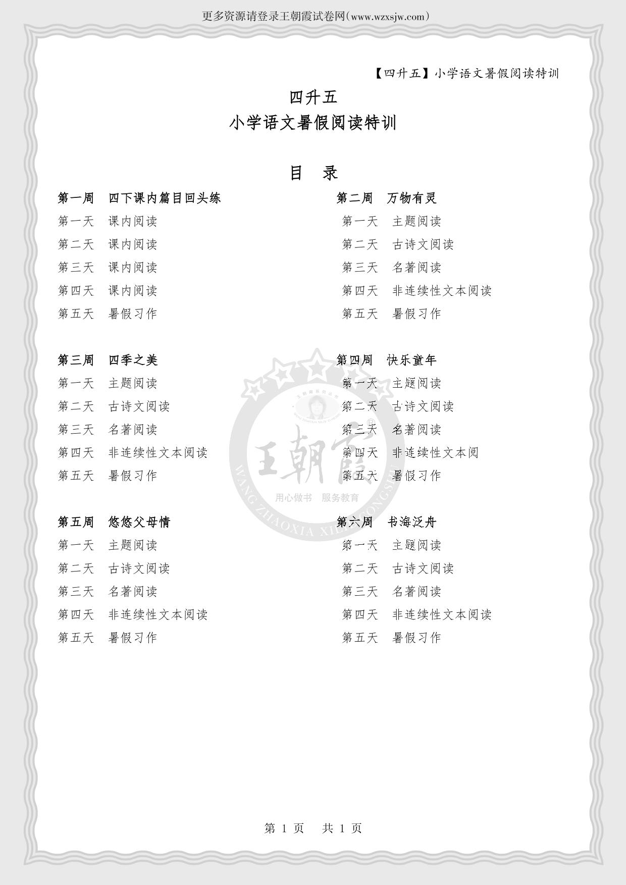 【四升五】小学语文暑假阅读特训·目录