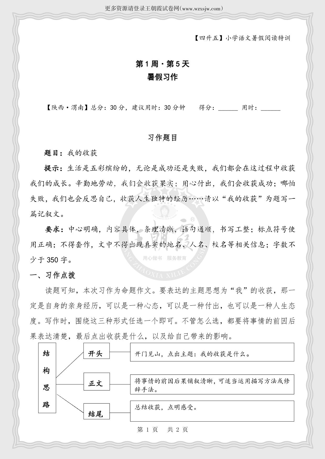 【四升五】小学语文暑假阅读特训第1周第5天 暑假习作