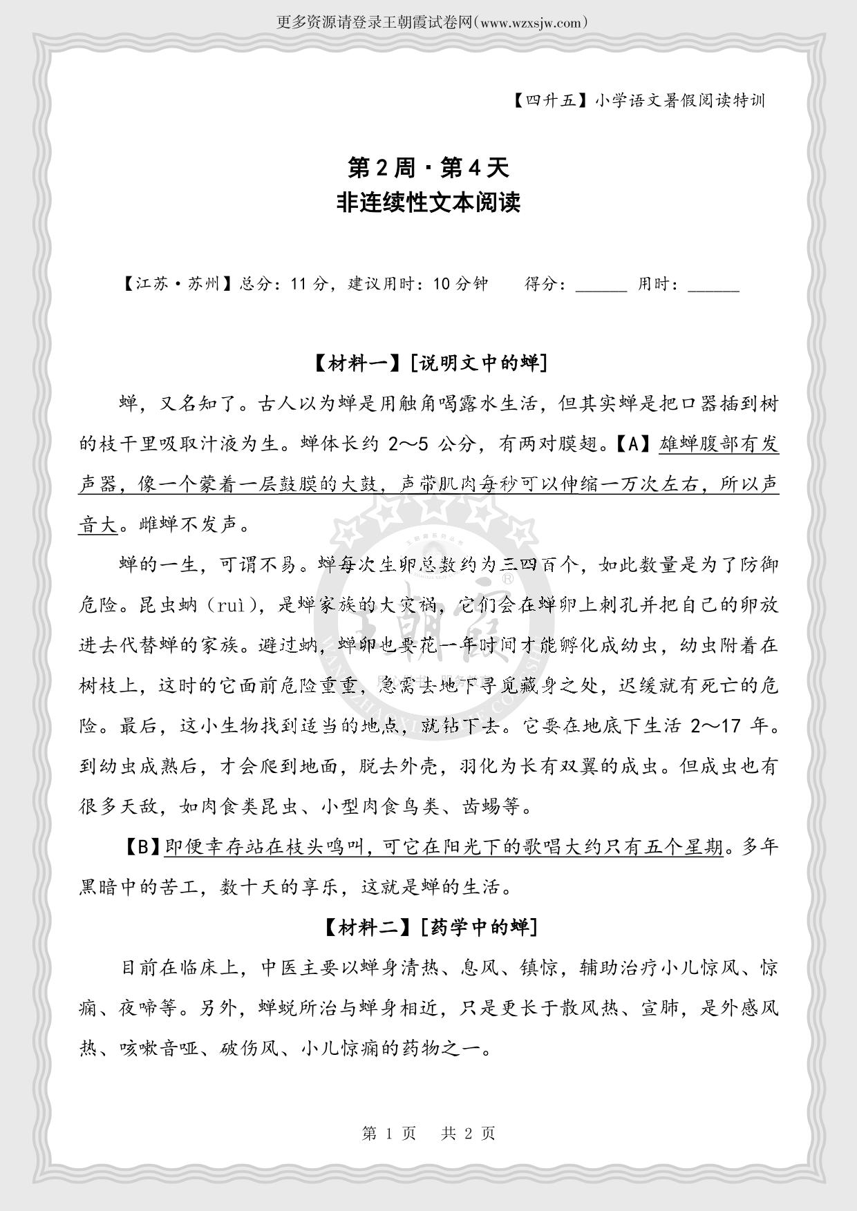 【四升五】小学语文暑假阅读特训第2周第4天 非连续性文本阅读