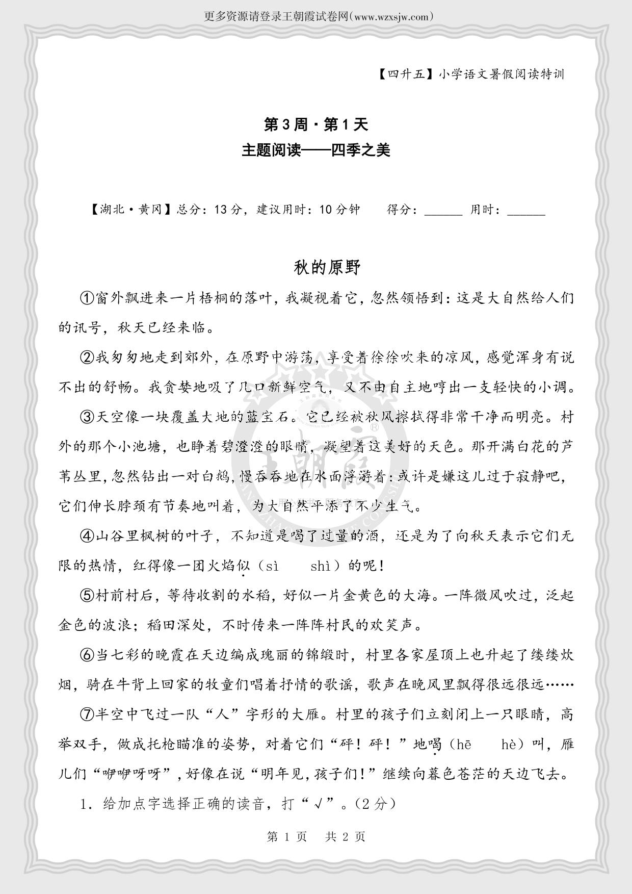 【四升五】小学语文暑假阅读特训第3周第1天 主题阅读 四季之美