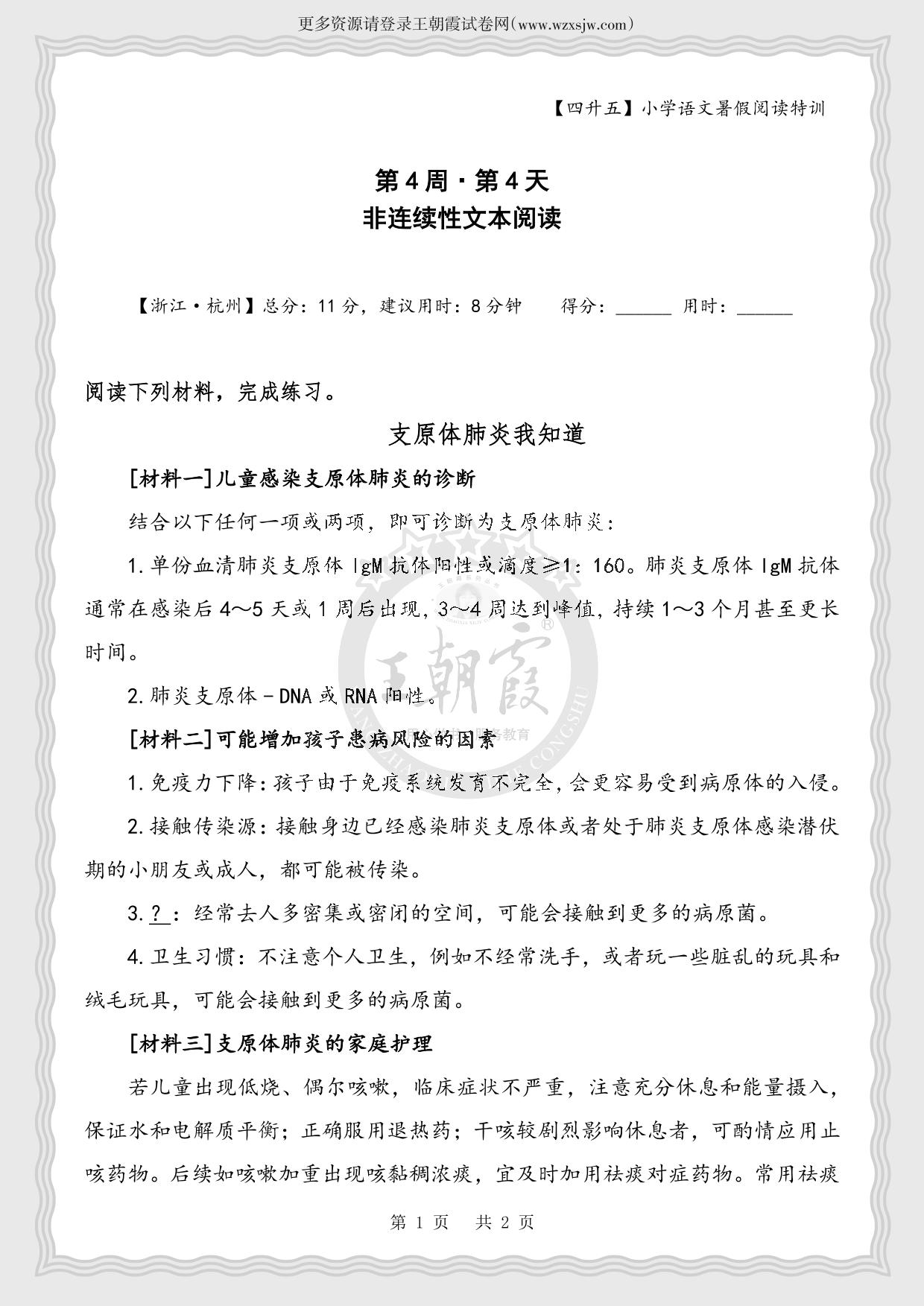 【四升五】小学语文暑假阅读特训第4周第4天 非连续性文本阅读