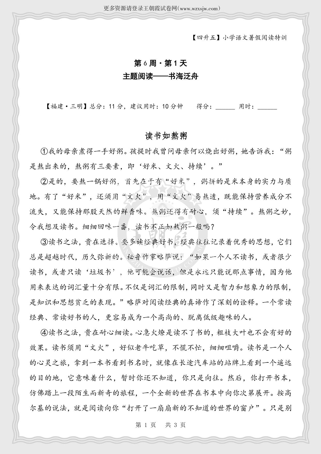 【四升五】小学语文暑假阅读特训第6周第1天 主题阅读 书海泛舟