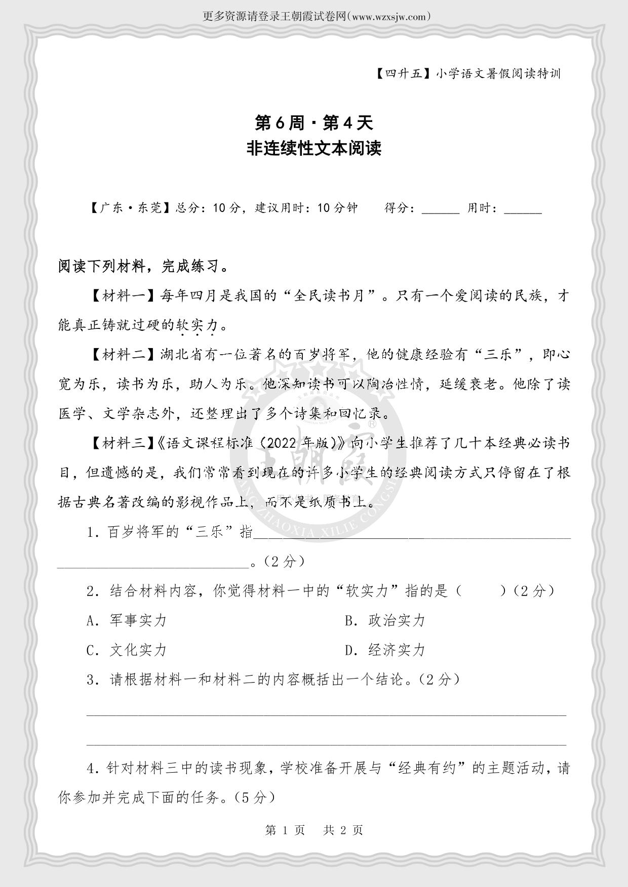 【四升五】小学语文暑假阅读特训第6周第4天 非连续性文本阅读