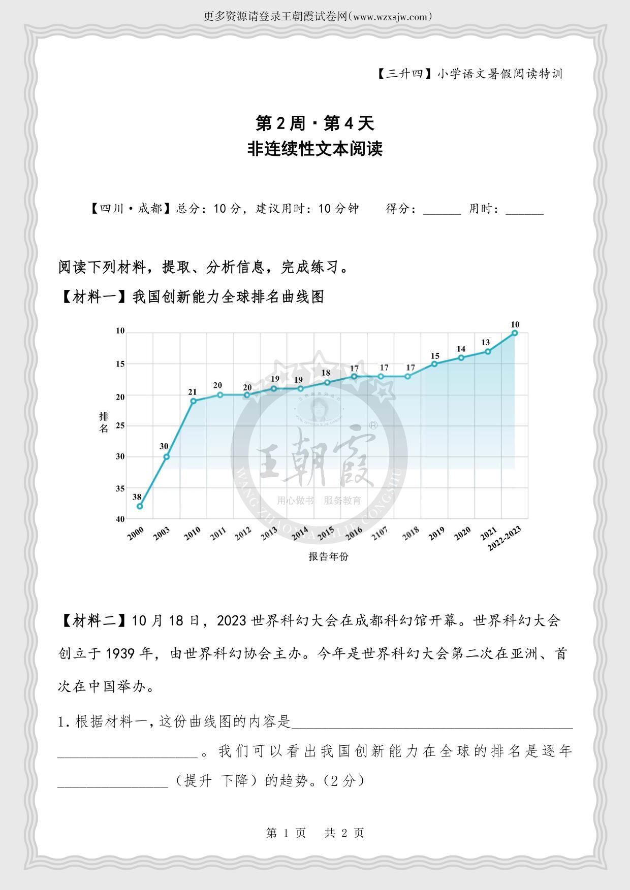 【三升四】小学语文暑假阅读特训第2周第4天 非连续性文本阅读